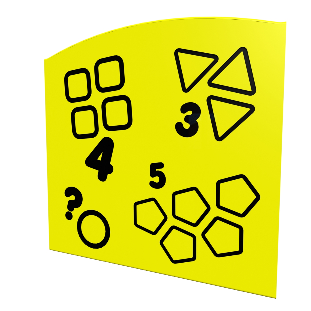 Panelen introducerar geometriska former och hjälper barn att räkna och identifiera dem genom lek. Lämplig även för barn med särskilda behov.