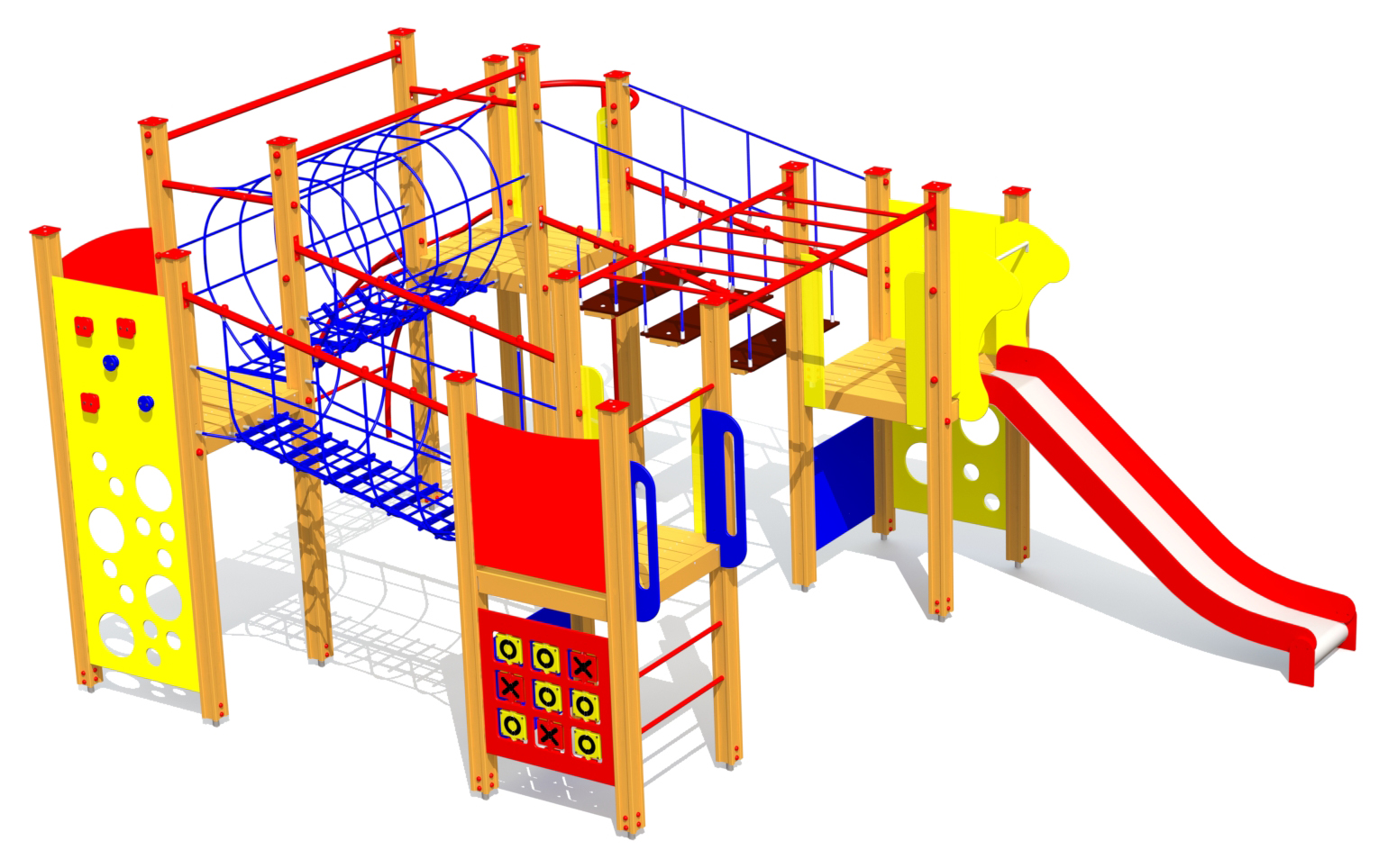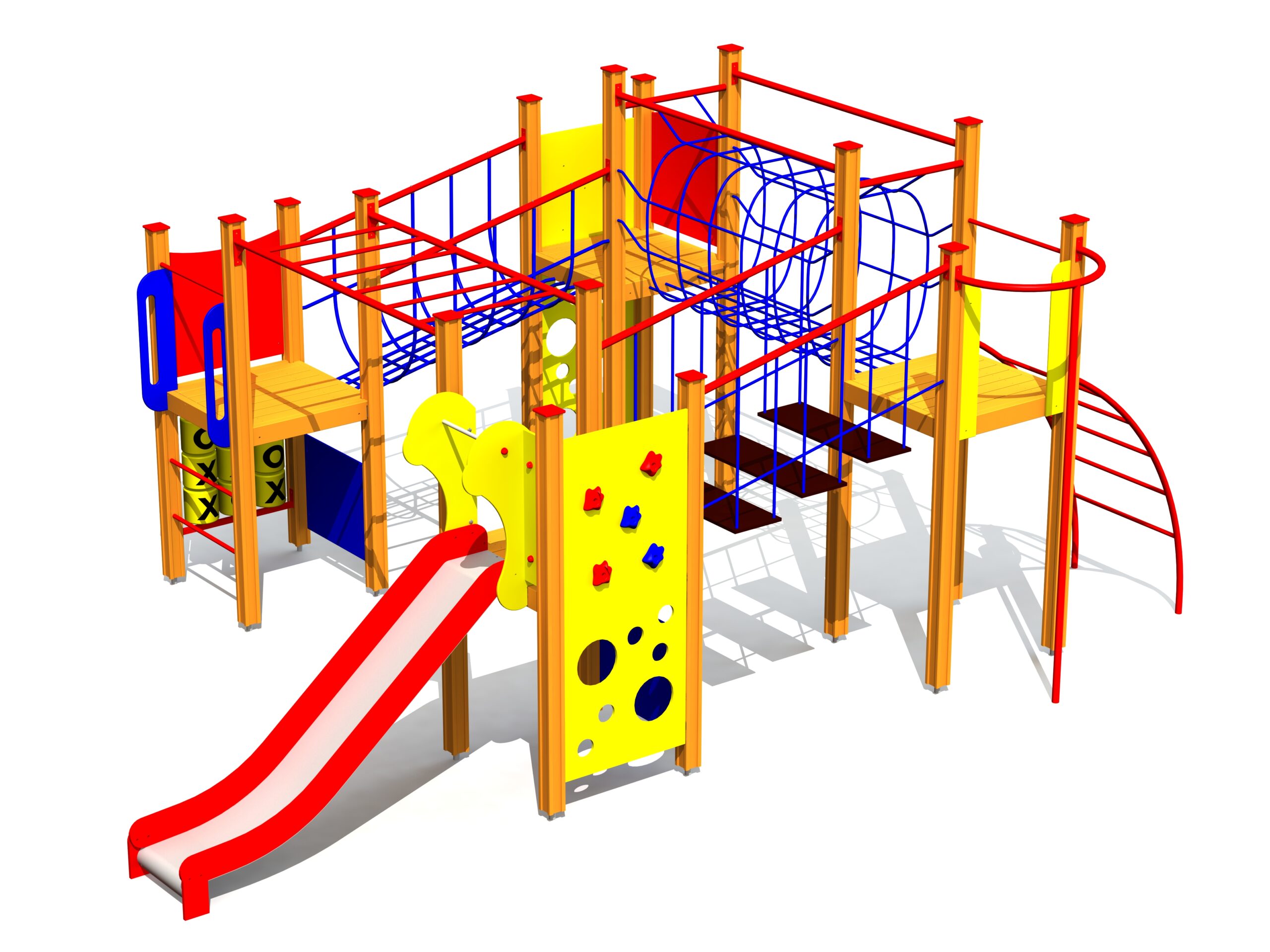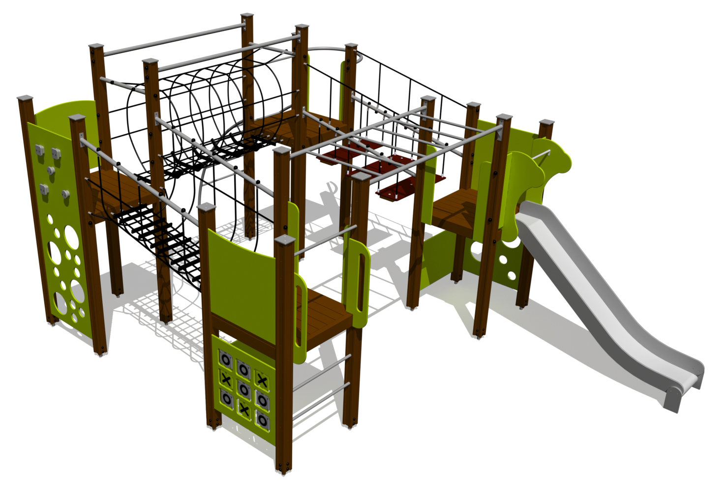 Produkten är utvecklad för lekplatser, förskolegårdar och andra offentliga utemiljöer där utrustningen behöver tåla regelbunden användning över tid. Modellen kombinerar flera lekmoment och ger barn möjlighet till varierad aktivitet, samspel och motorisk utveckling. Mått enligt specifikation: cirka 6,37 x 4,33 x 2,85 m. Rekommenderad ålder: 4+. En hållbar lösning för långsiktig drift och trygg användning i offentlig utemiljö.