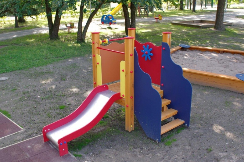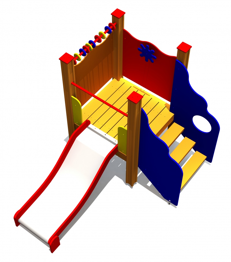 En lekfull rutschkana för de allra minsta, utformad med en låg och stabil plattform som gör den idealisk för nyfikna småbarn. Rutschkanan har en lättillgänglig trappa med säkra sidopaneler som ger extra stöd när barnen klättrar upp. Lekpanelen är utrustad med både kulram och kaptensroder, vilket uppmuntrar till fantasifull lek, rollspel och enkel räknelek. Här utvecklas finmotorik, socialt samspel och turtagning samtidigt som barnen upptäcker glädjen i att klättra och rutscha. Den låga höjden och det vänliga formspråket gör rutschkanan särskilt lämpad för förskolor och småbarnslekplatser där trygghet och tillgänglighet står i fokus.
