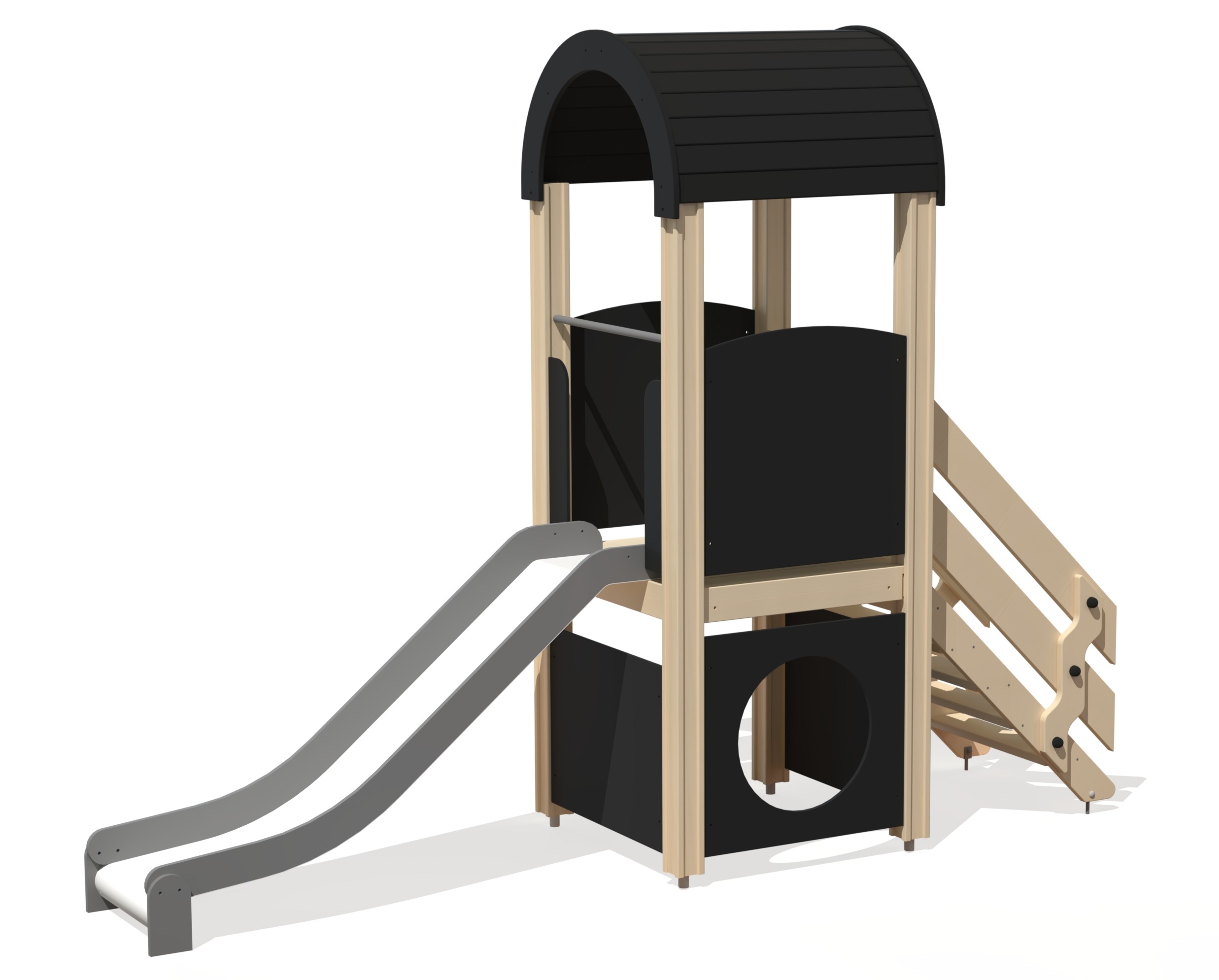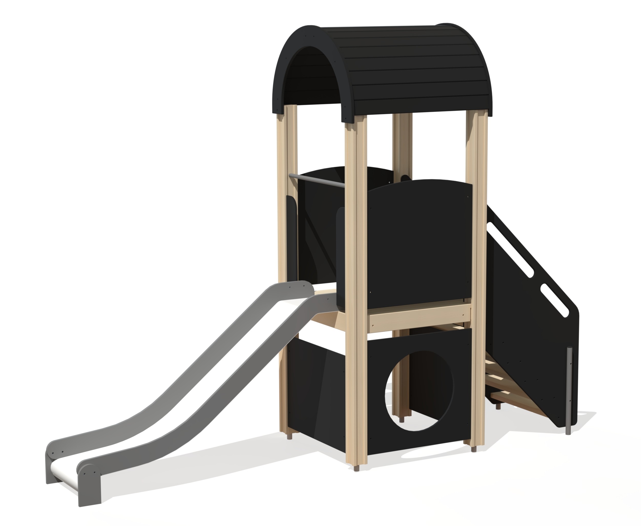 Lekställning Ann är en kompakt rutschkana för småbarn med tak och trappor utrustade med ledstänger för extra trygghet. Rutschkanans sidopaneler kan anpassas och bytas ut mot olika aktivitetsväggar eller tematiska tryckta paneler med exempelvis djur, fåglar, fiskar, träd eller bär. Utformningen av panelerna slutförs i dialog med kunden vid beställning, vilket gör lekställningen flexibel och anpassningsbar efter miljö och tema.
