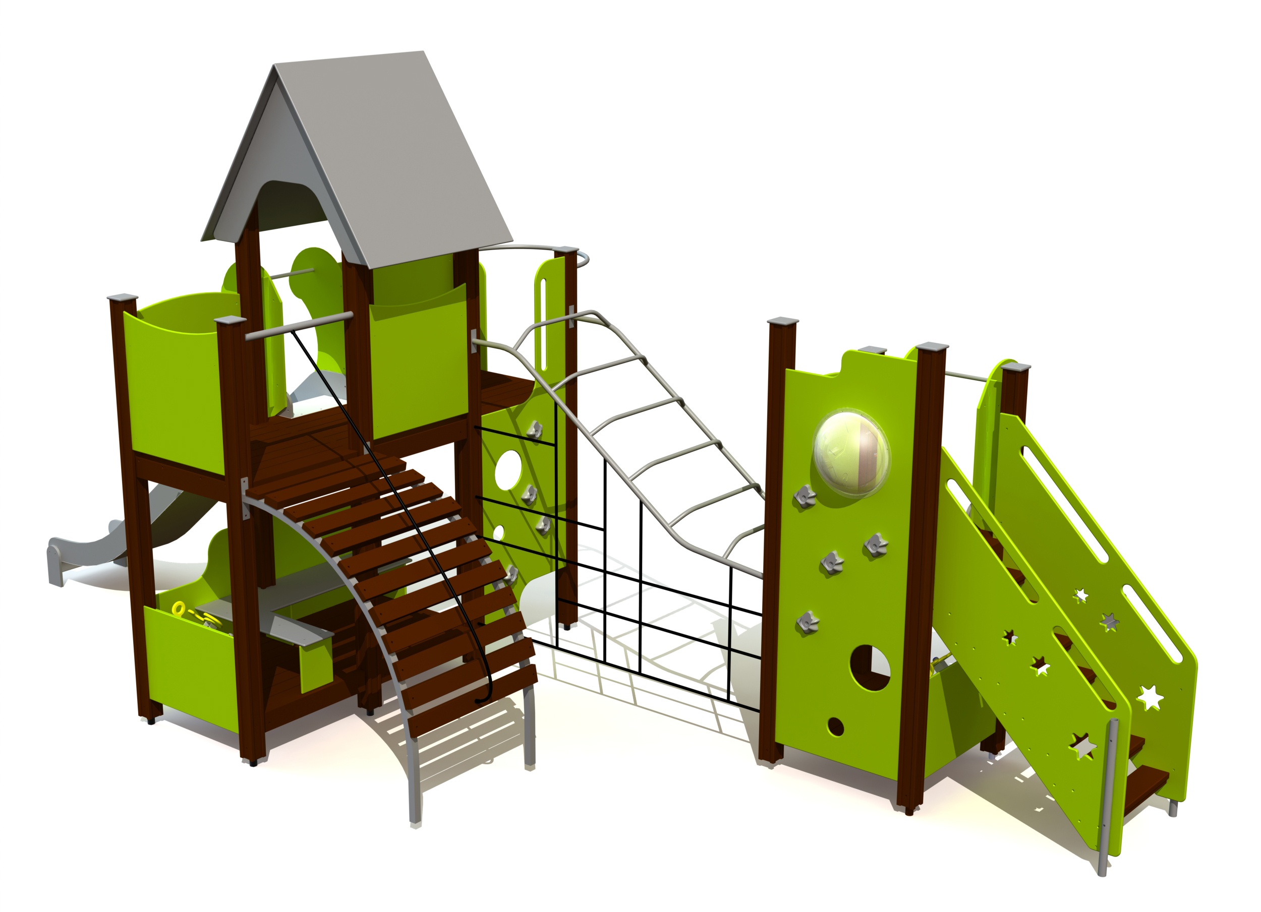 Lekställning Arwen är en lekställning som tagits fram för lekplatser, förskolegårdar och andra offentliga utemiljöer. Modellen kombinerar flera lekmoment och ger barn möjlighet till varierad aktivitet, samspel och motorisk utveckling. Konstruktionen är avsedd för regelbunden användning över tid och passar projekt där man vill kombinera lekvärde med hållbar drift. Mått enligt specifikation: cirka 7,33 x 4,61 x 3,73 m. Rekommenderad ålder: 1+/4+. En praktisk lösning för långsiktig och trygg lekmiljö.
