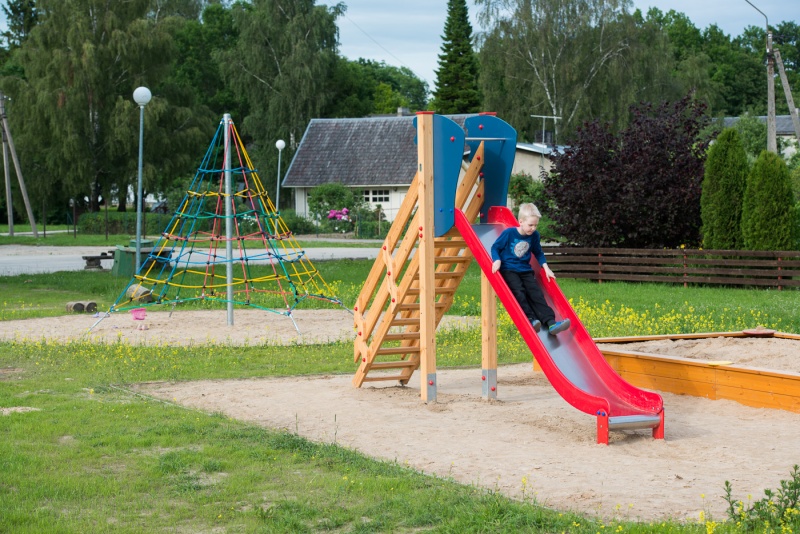 Stabil fristående rutschkana för små barn som vill leka självständigt i en trygg och överskådlig miljö.