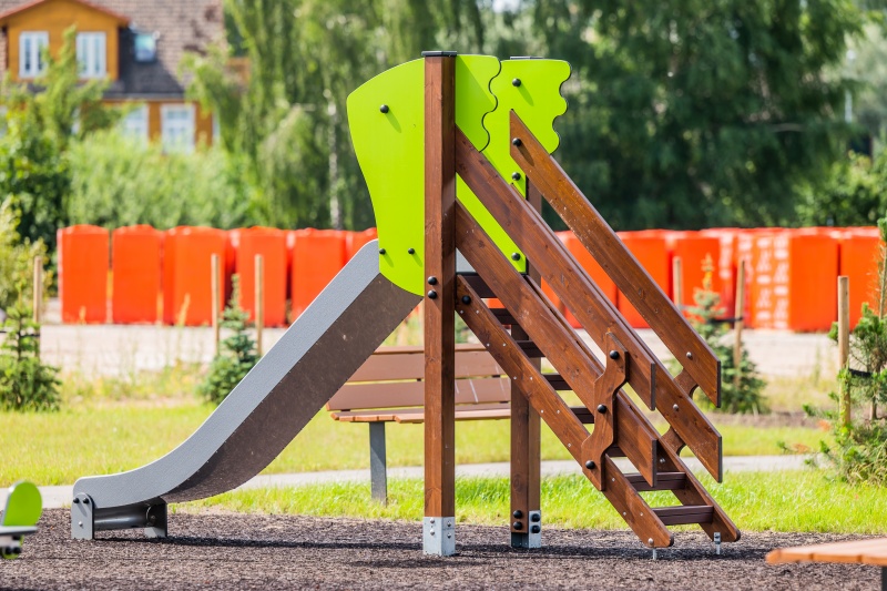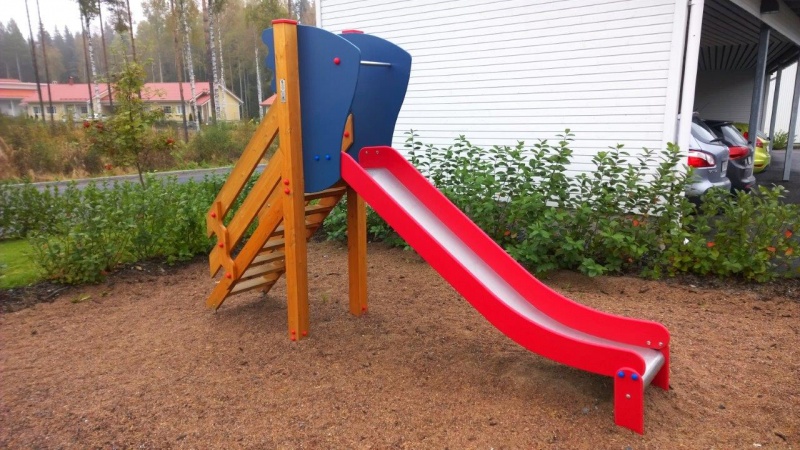 En enkel och trygg fristående rutschkana som är särskilt anpassad för småbarns första lekupplevelser.