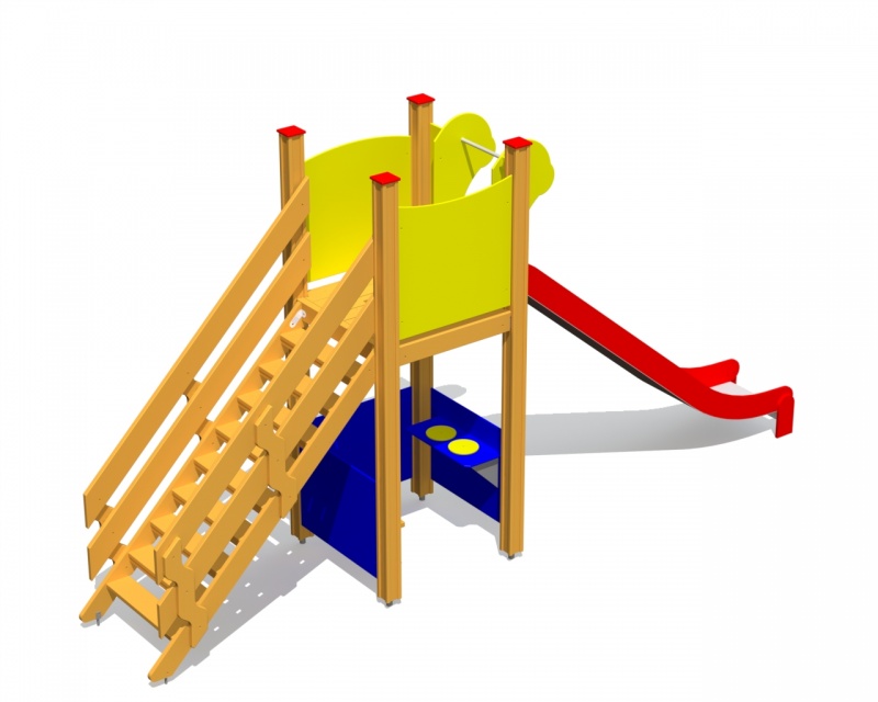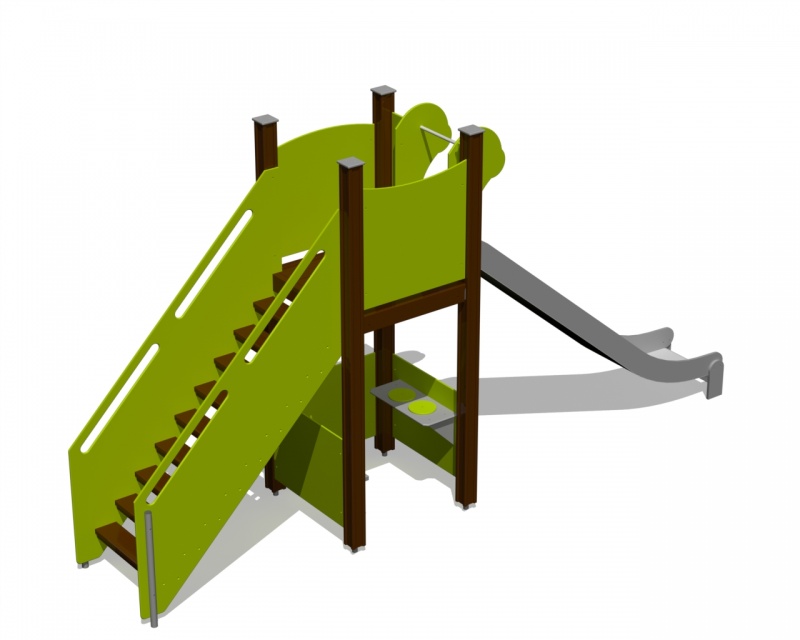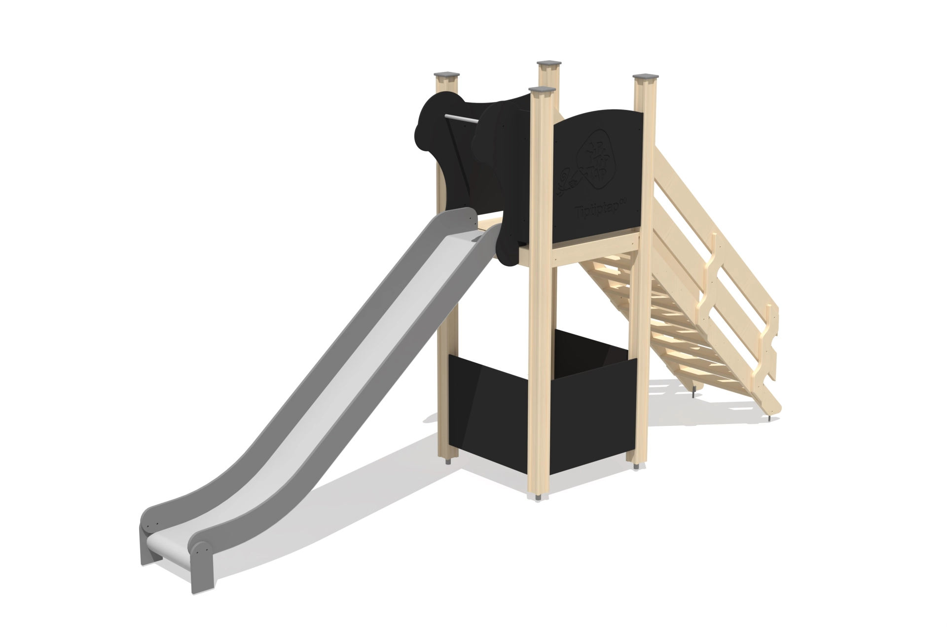 Kompakt och lättillgänglig lekställning med rutschkana, plattform och rolleksfunktioner. Perfekt för lekplatser där trygg, fantasifull lek står i fokus.