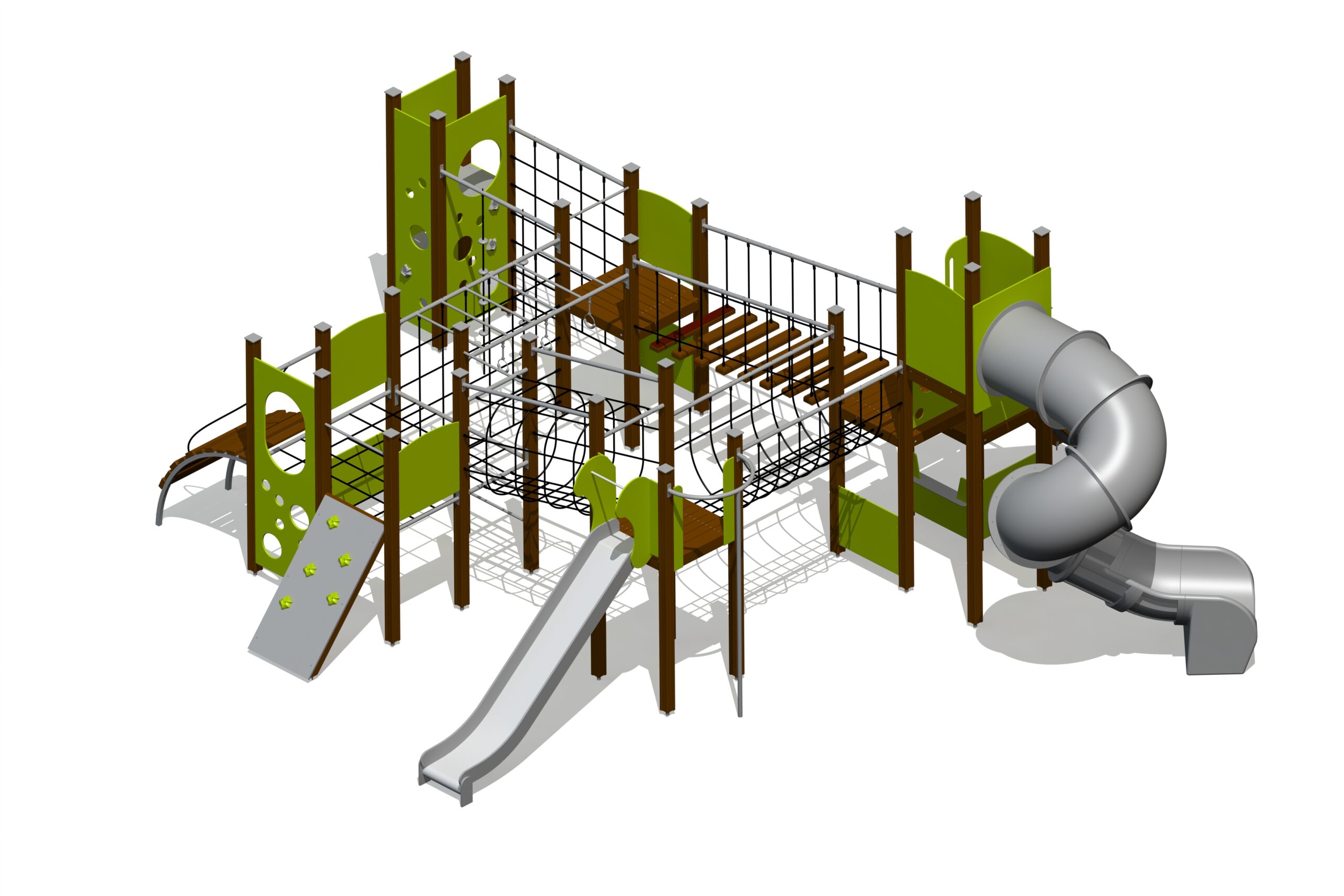 Produkten är utvecklad för lekplatser, förskolegårdar och andra offentliga utemiljöer där utrustningen behöver tåla regelbunden användning över tid. Modellen kombinerar flera lekmoment och ger barn möjlighet till varierad aktivitet, samspel och motorisk utveckling. Mått enligt specifikation: cirka 9,55 x 7,98 x 3,66 m. Rekommenderad ålder: 4+. En hållbar lösning för långsiktig drift och trygg användning i offentlig utemiljö.