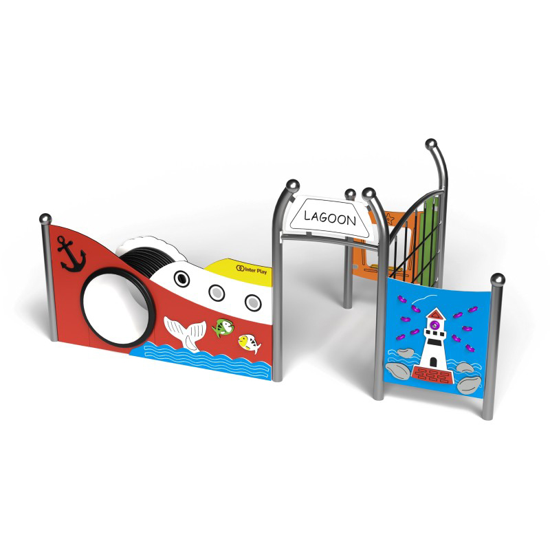 Port Lekställning är en attraktiv lekplatsfunktion som kombinerar roligt, lärande och kreativitet, designad för barn som använder rullstol. Barn kan ta roller som sjömän eller fiskare och utveckla fantasi, motorik och lagarbete. Setet har ett realistiskt utseende med porten ”Lagunen”, fiskpanel, disk, tunnel, klättervägg, skepp och fyr. Roterande hjul som avger färgstarkt ljus förstärker lekupplevelsen. Konstruktionen är gjord av rostfritt stål med rör Ø 76,1 mm och väggtjocklek 2 mm. Fem av åtta stolpar är avslutade med sfäriska dekorelement. Rep är 16 mm tjocka med fiberkärna och stålfläta, UV-beständiga och flamskyddade. Paneler och dekorelement är av 15 mm HDPE, väder- och slagtåligt.