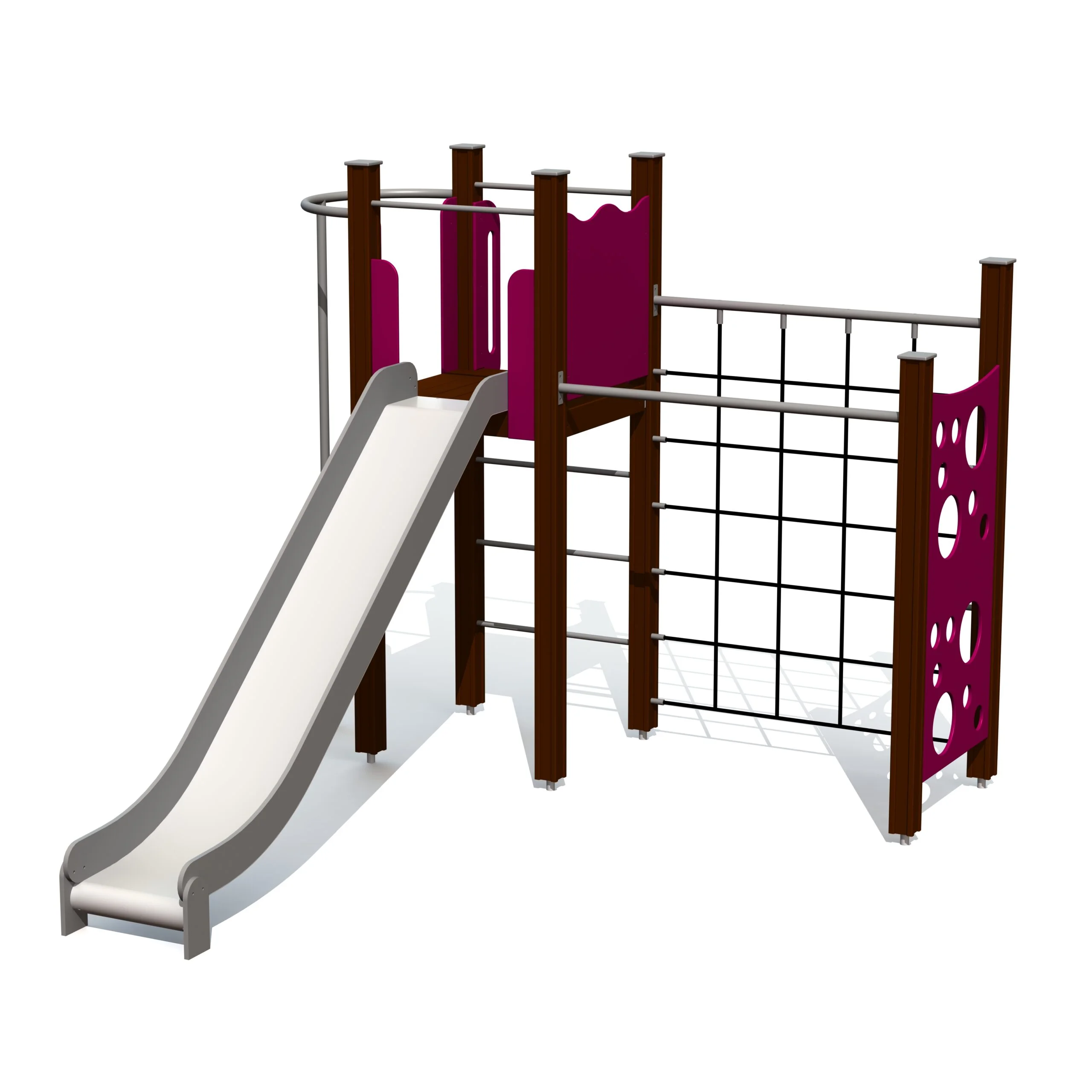 Hardy är ett motoriskt utmanande lekelement som fokuserar på klättring och fysisk utveckling. Lekstrukturen erbjuder klättervägg i HDPE med grepp och öppningar som tränar styrka, grepp, koordination och kroppskontroll. Klätternätet ger ett tekniskt klättermoment som utmanar balans och rörelseplanering. Brandmansstången möjliggör snabb och fartfylld nedstigning, medan plattformsförflyttning på höjd tränar stabilitet och höjdtolerans. En rutschkana från 1,55 m höjd stärker kroppskontroll och landningsteknik. Tvärstången ger möjlighet till hängande och svingande rörelser som stärker överkroppen.