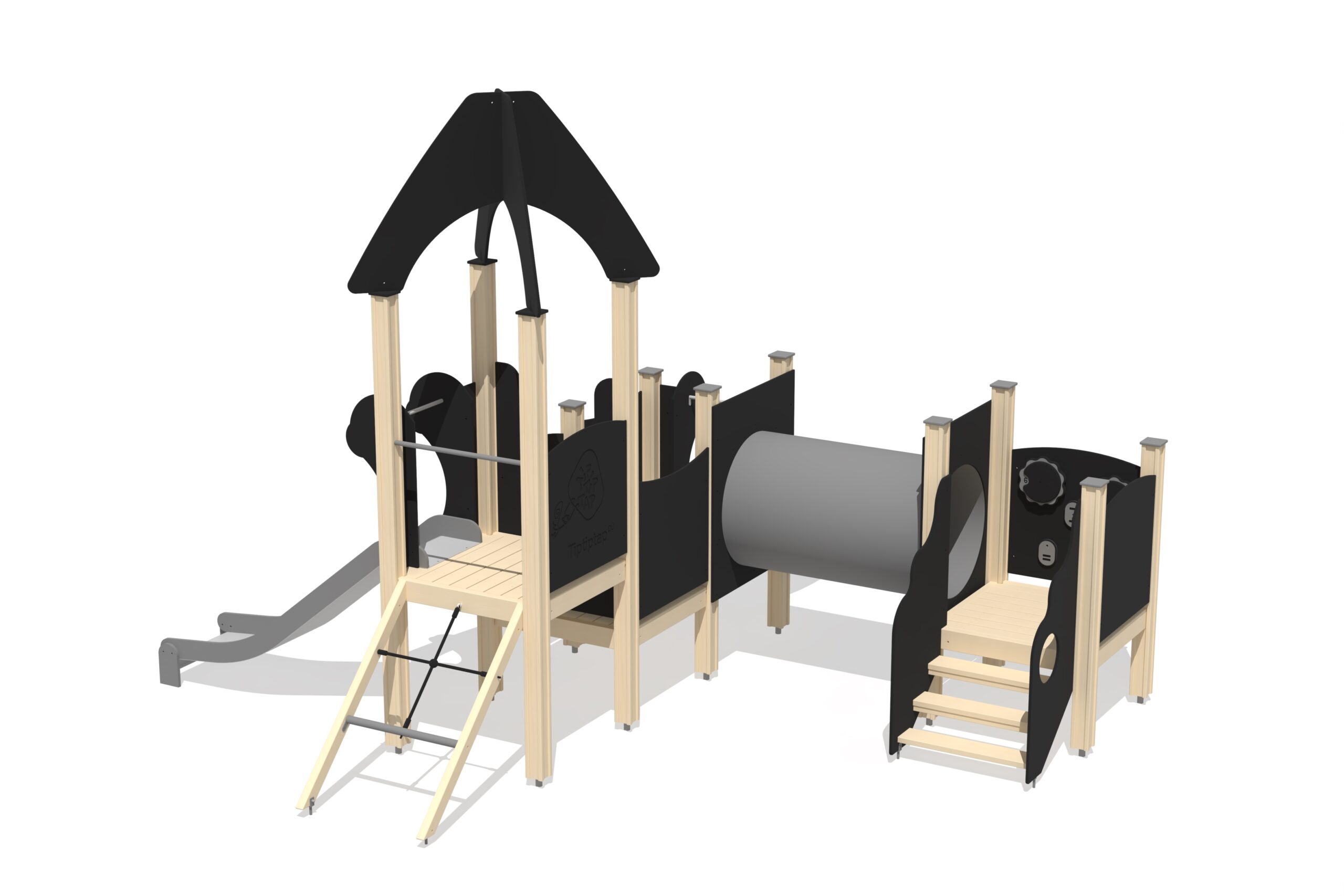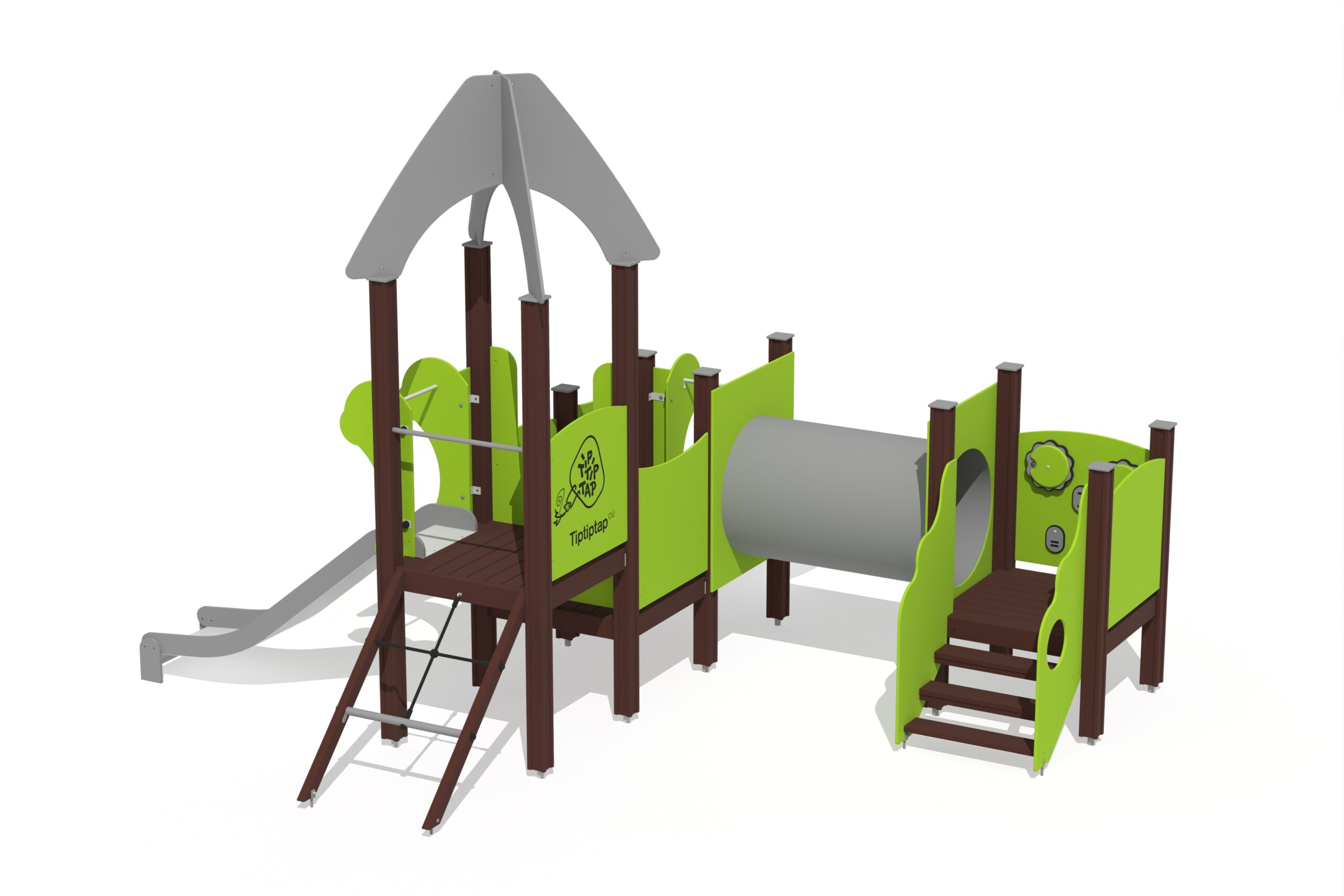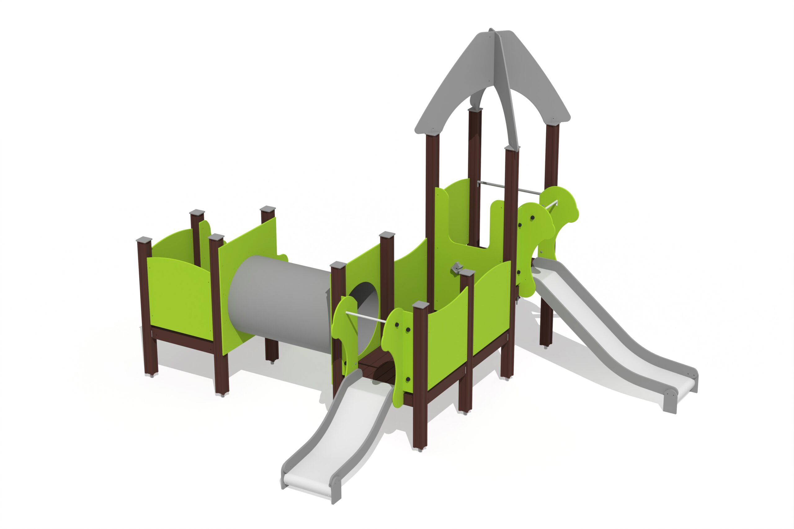 Produkten är utvecklad för lekplatser, förskolegårdar och andra offentliga utemiljöer där utrustningen behöver tåla regelbunden användning över tid. Modellen kombinerar flera lekmoment och ger barn möjlighet till varierad aktivitet, samspel och motorisk utveckling. Mått enligt specifikation: cirka 4,81 x 4,69 x 3,36 m. Rekommenderad ålder: 1+. En hållbar lösning för långsiktig drift och trygg användning i offentlig utemiljö.