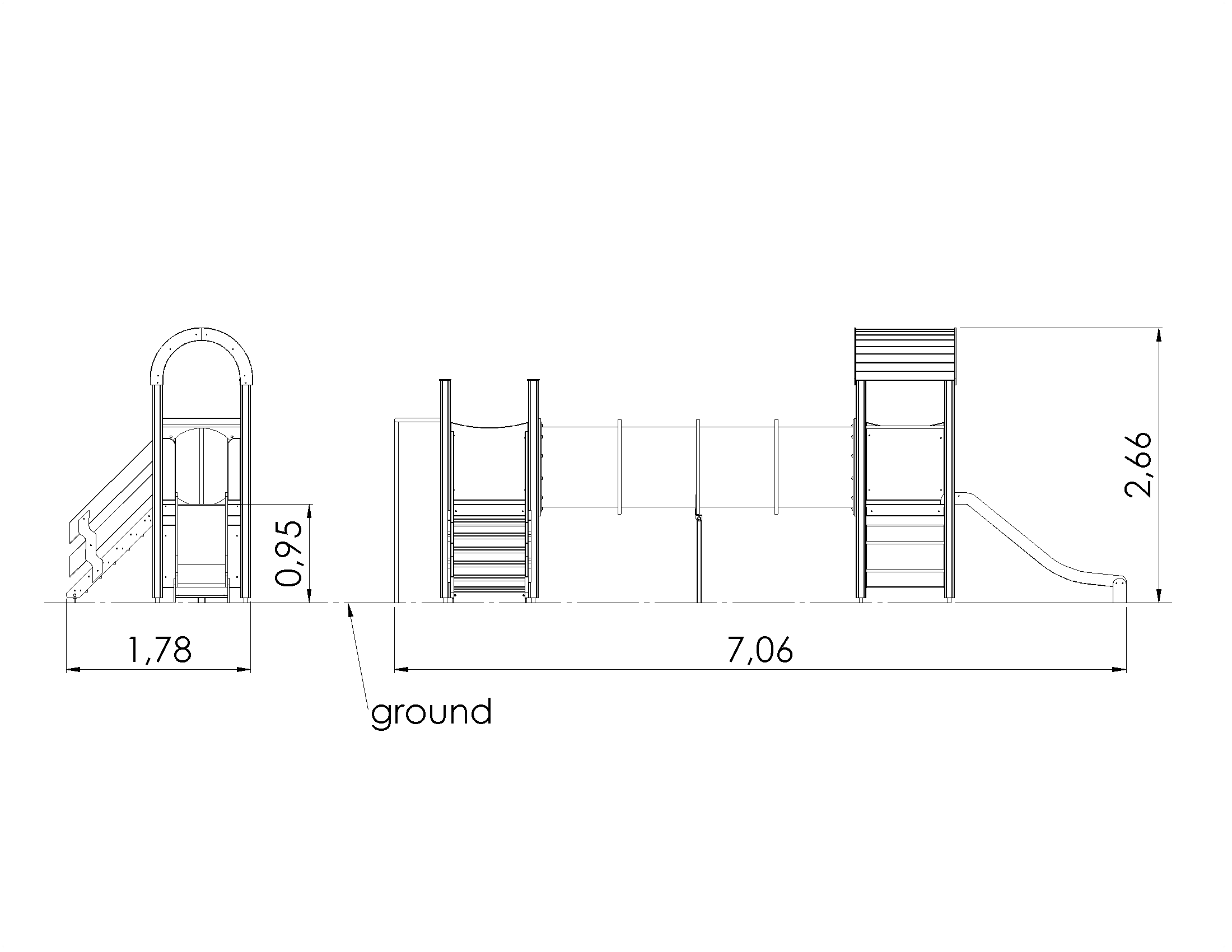 Produkten är utvecklad för lekplatser, förskolegårdar och andra offentliga utemiljöer där utrustningen behöver tåla regelbunden användning över tid. Modellen kombinerar flera lekmoment och ger barn möjlighet till varierad aktivitet, samspel och motorisk utveckling. Mått enligt specifikation: cirka 7,06 x 1,78 x 2,66 m. Rekommenderad ålder: 1+. En hållbar lösning för långsiktig drift och trygg användning i offentlig utemiljö.