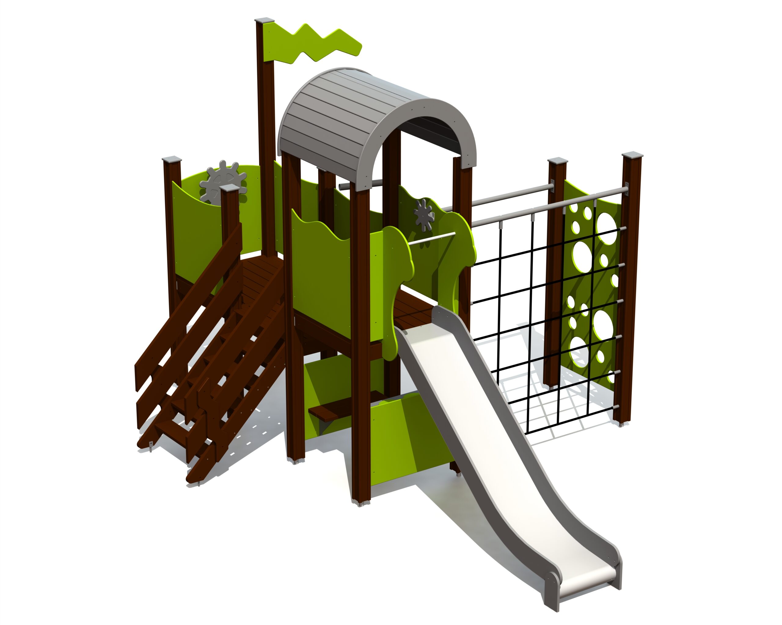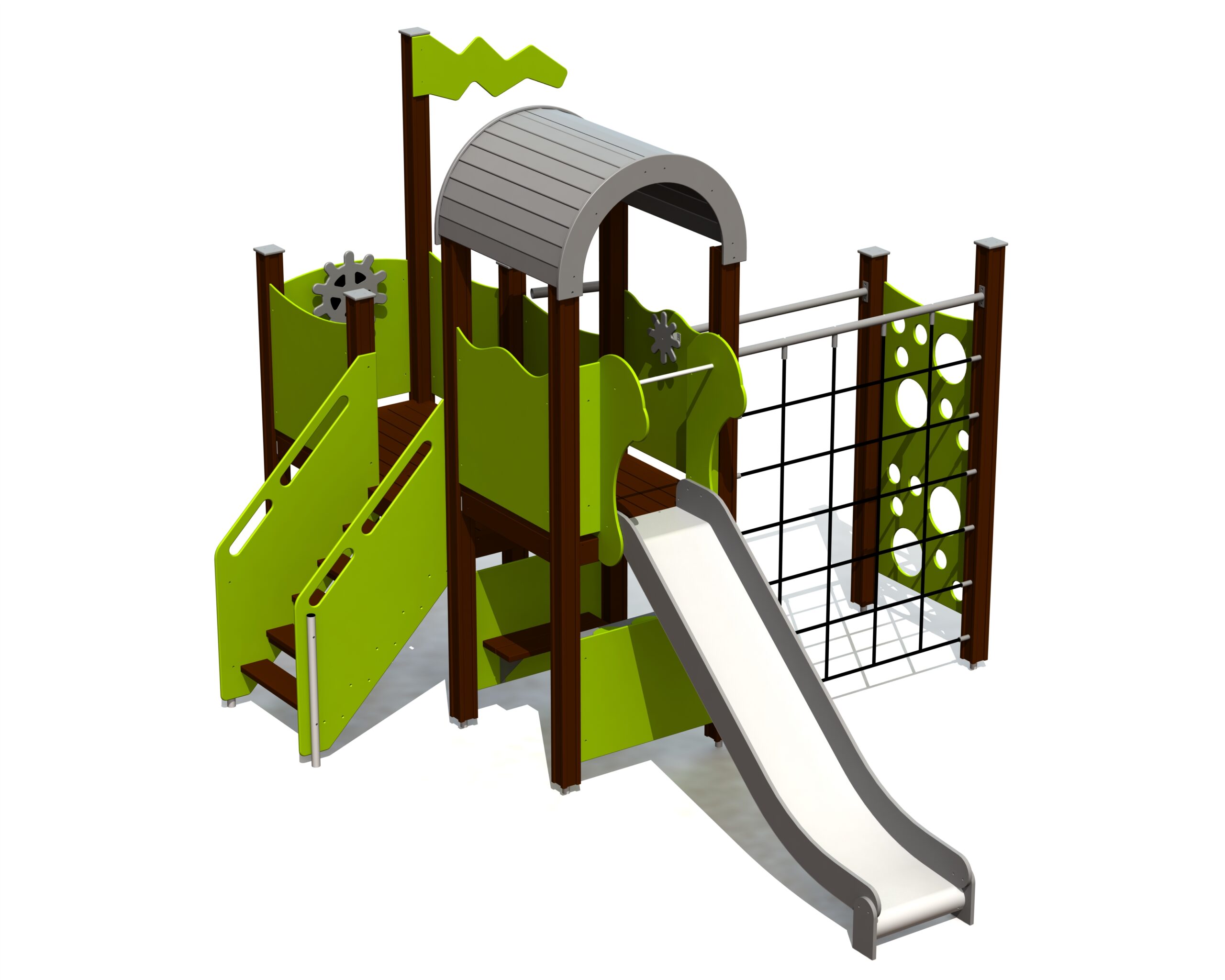 Produkten är utvecklad för lekplatser, förskolegårdar och andra offentliga utemiljöer där utrustningen behöver tåla regelbunden användning över tid. Modellen kombinerar flera lekmoment och ger barn möjlighet till varierad aktivitet, samspel och motorisk utveckling. Mått enligt specifikation: cirka 4,6 x 3,32 x 2,9 m. Rekommenderad ålder: 1+. En hållbar lösning för långsiktig drift och trygg användning i offentlig utemiljö.