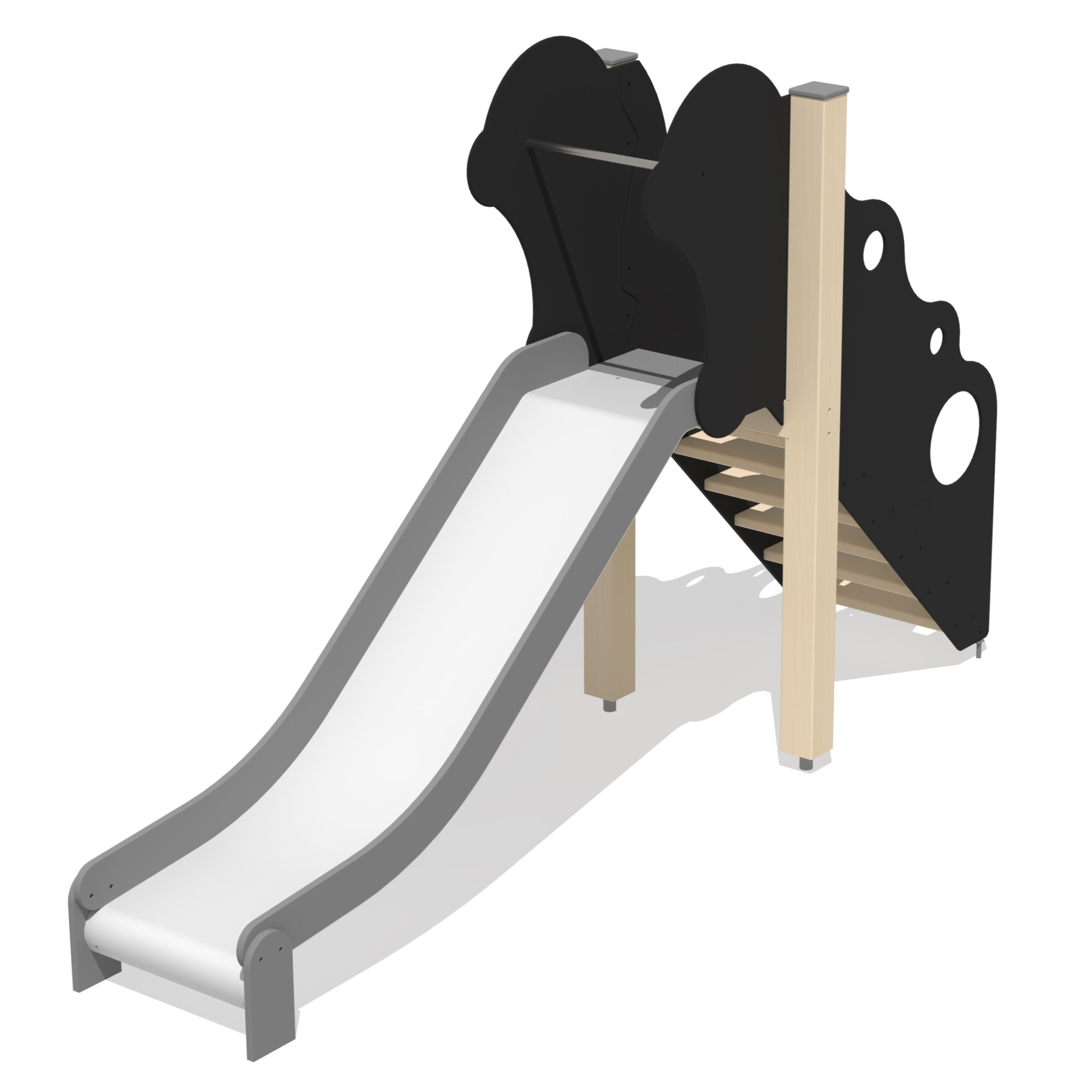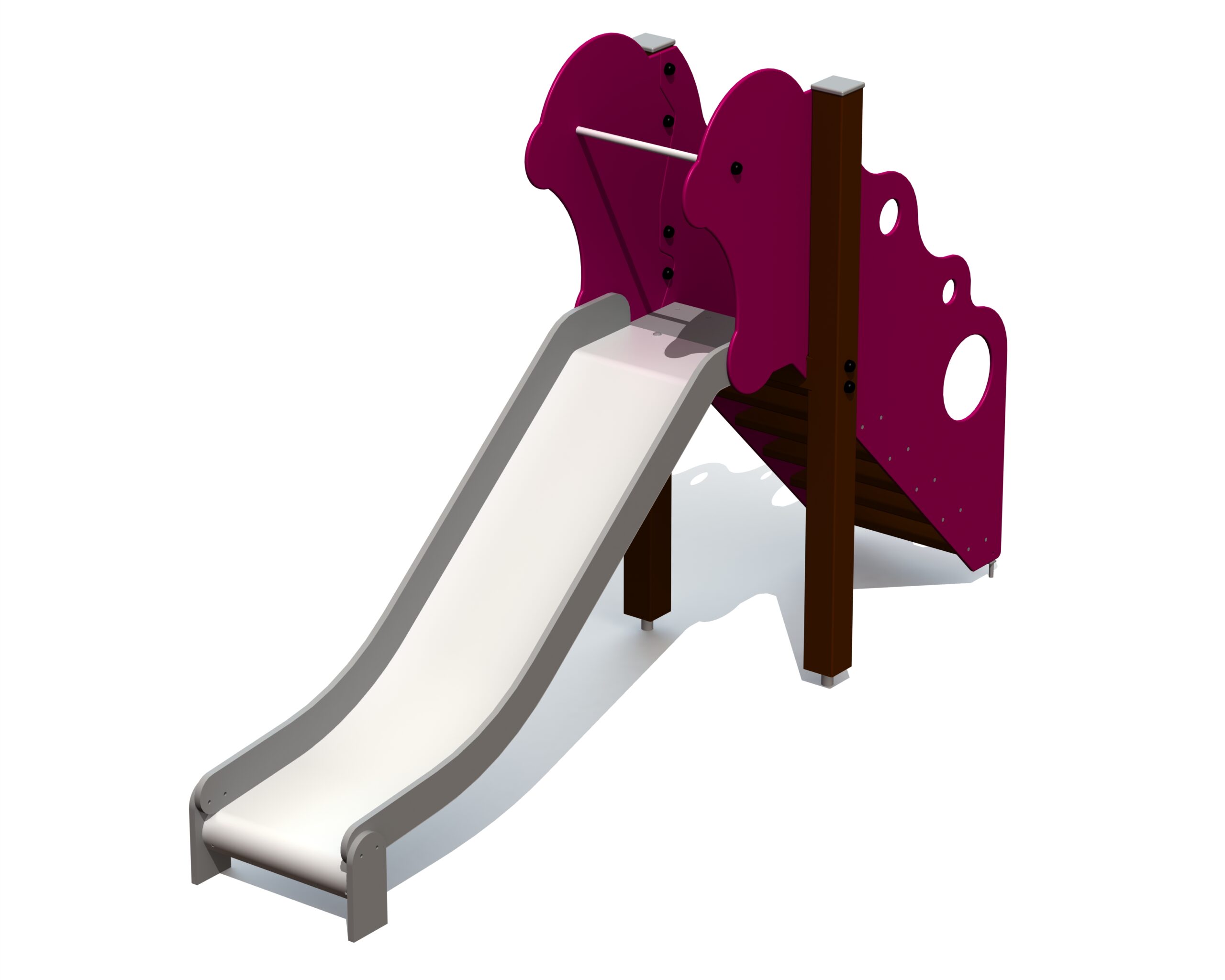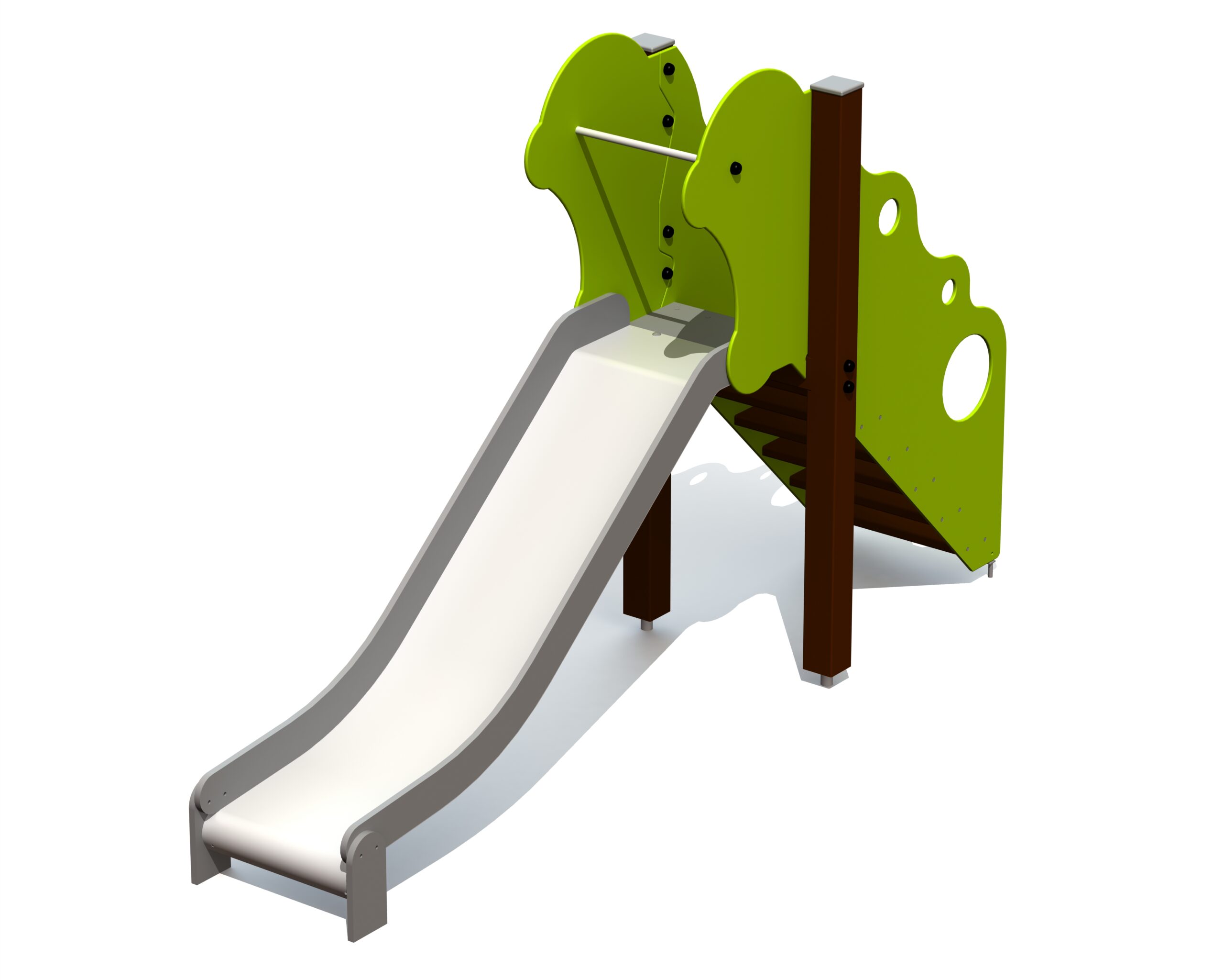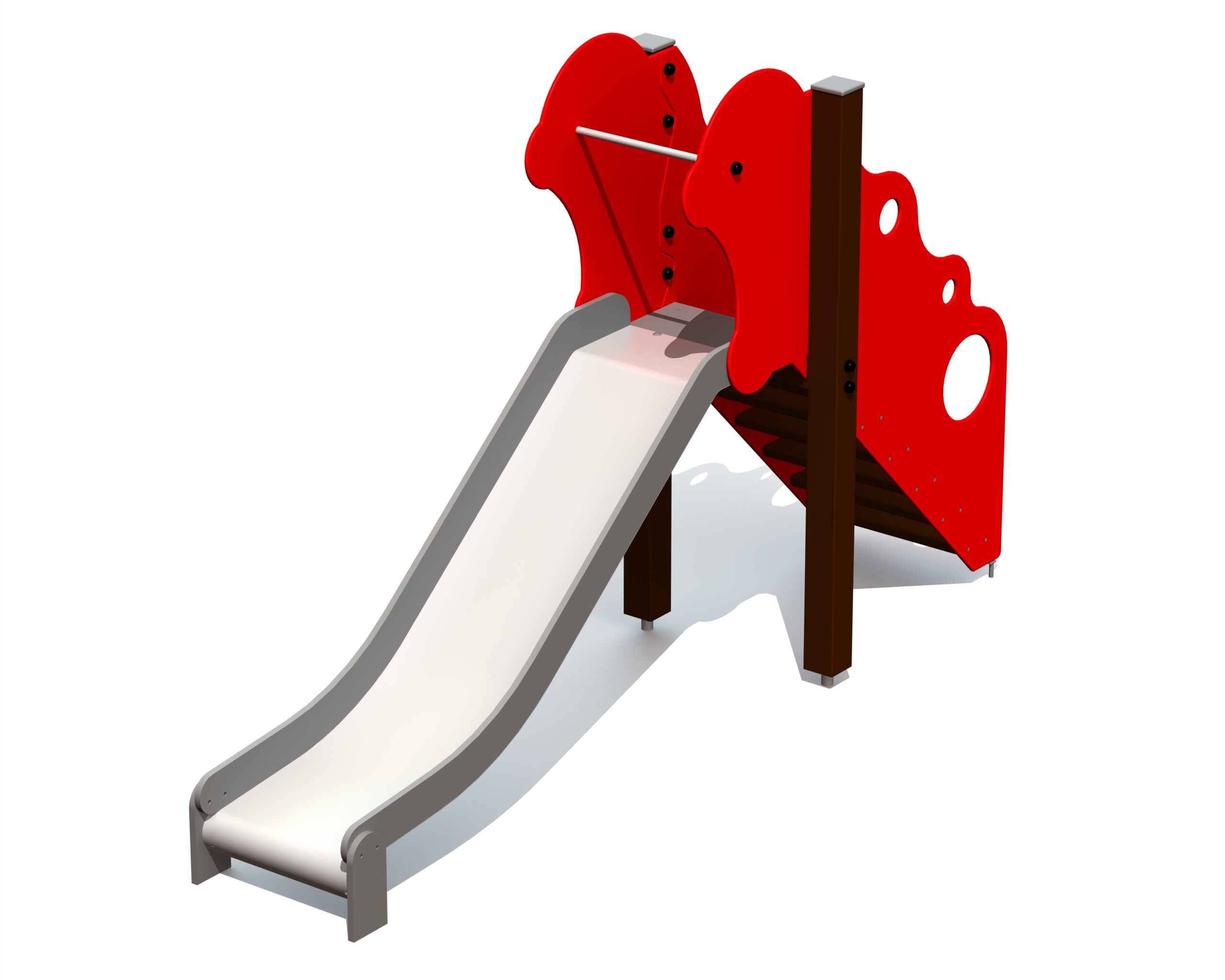 En fristående rutschkana anpassad för småbarn, utformad för säker och lättillgänglig glidlek som tränar balans och kroppskontroll.