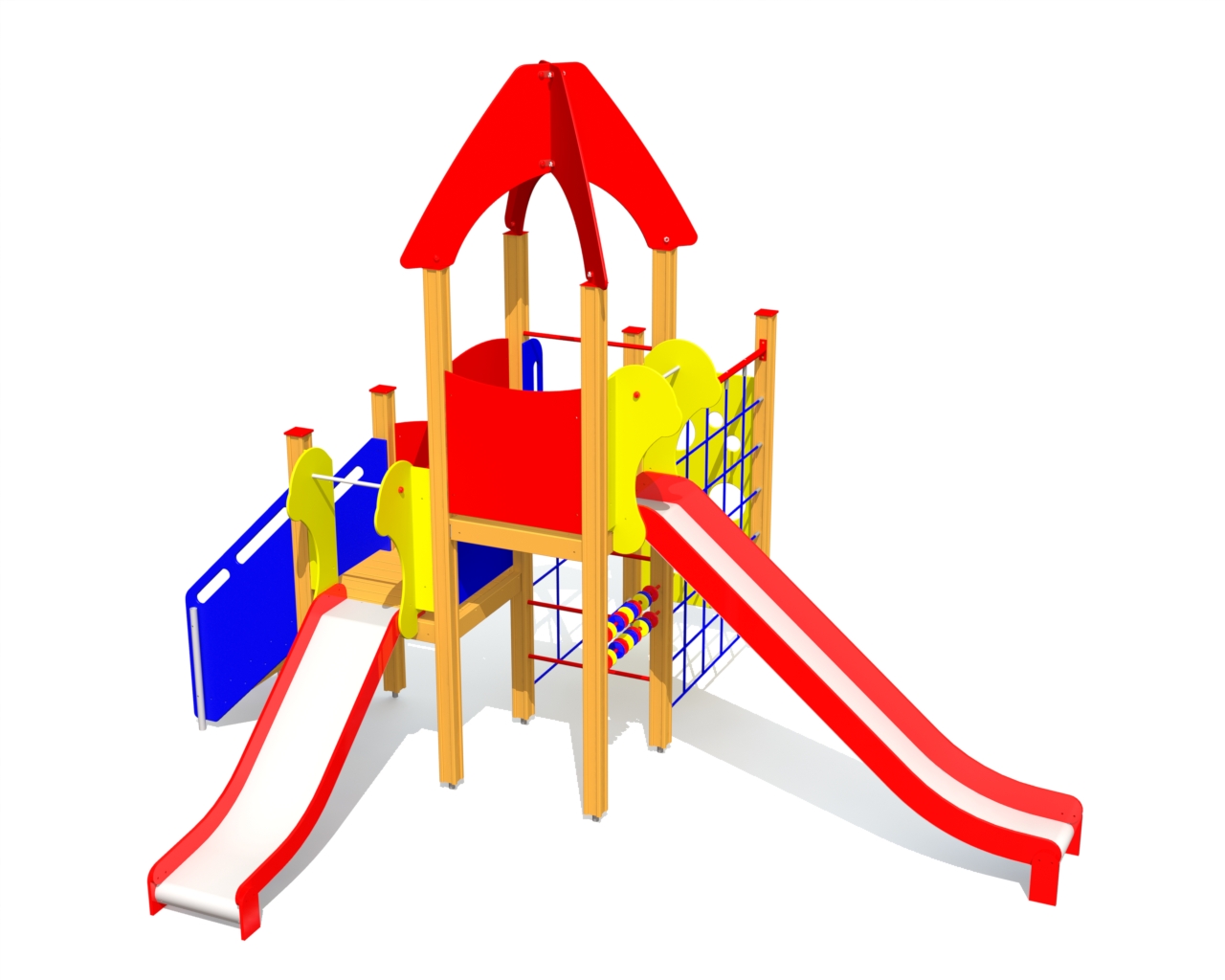 Produkten är utvecklad för lekplatser, förskolegårdar och andra offentliga utemiljöer där utrustningen behöver tåla regelbunden användning över tid. Modellen kombinerar flera lekmoment och ger barn möjlighet till varierad aktivitet, samspel och motorisk utveckling. Mått enligt specifikation: cirka 4,95 x 4,16 x 3,81 m. Rekommenderad ålder: 1+. En hållbar lösning för långsiktig drift och trygg användning i offentlig utemiljö.