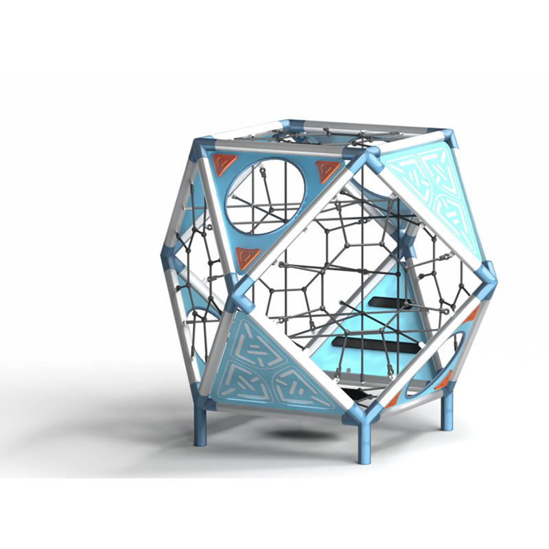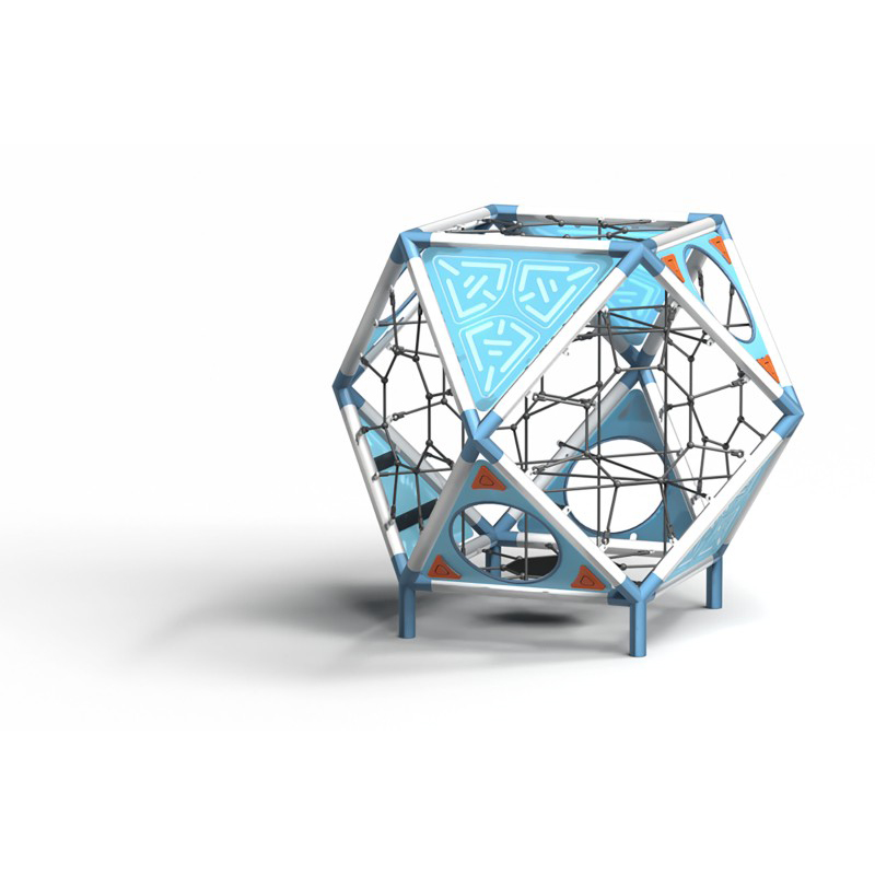 Lekställning med sfärisk modul i stabil stålkonstruktion. Designad för klättring och rörelselek med hög strukturell stabilitet. Tillverkad av varmförzinkat och pulverlackerat stål. Anpassad för intensiv användning i offentlig miljö.