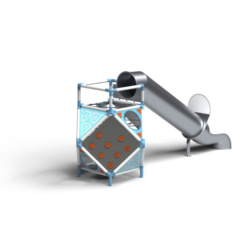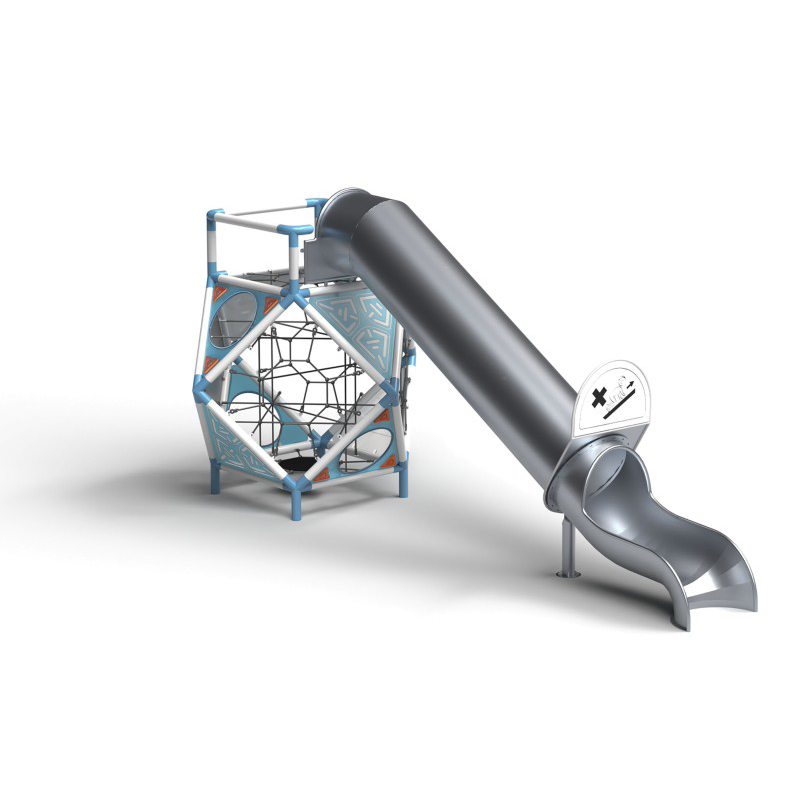 Lekställning med sfärisk modul i robust stålkonstruktion. Varmförzinkad och pulverlackerad för maximal väderbeständighet. Anpassad för intensiv lek och offentlig användning.