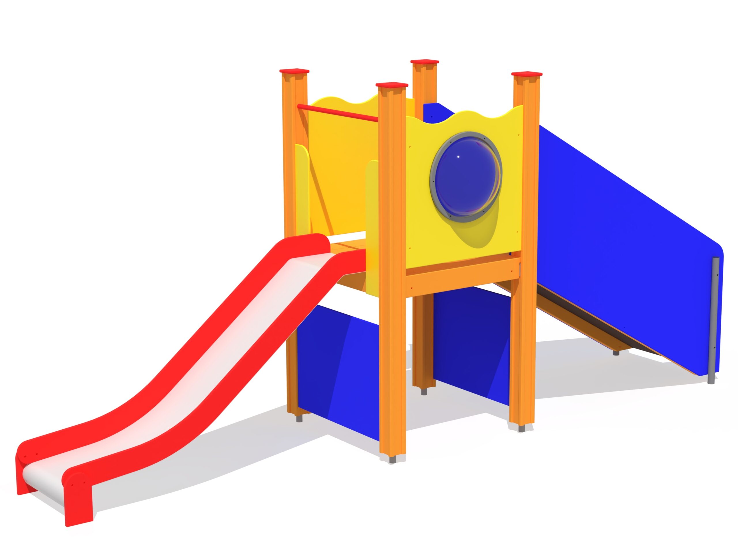 Lekställning Tim är en rutschkana för småbarn som nås via en 1,75 meter lång ramp med trästeg. Rampen gör lekställningen lättillgänglig och passar barn som behöver extra stöd vid klättring. Konstruktionen uppmuntrar till trygg rörelselek och utveckling av balans och motorik i tidig ålder.