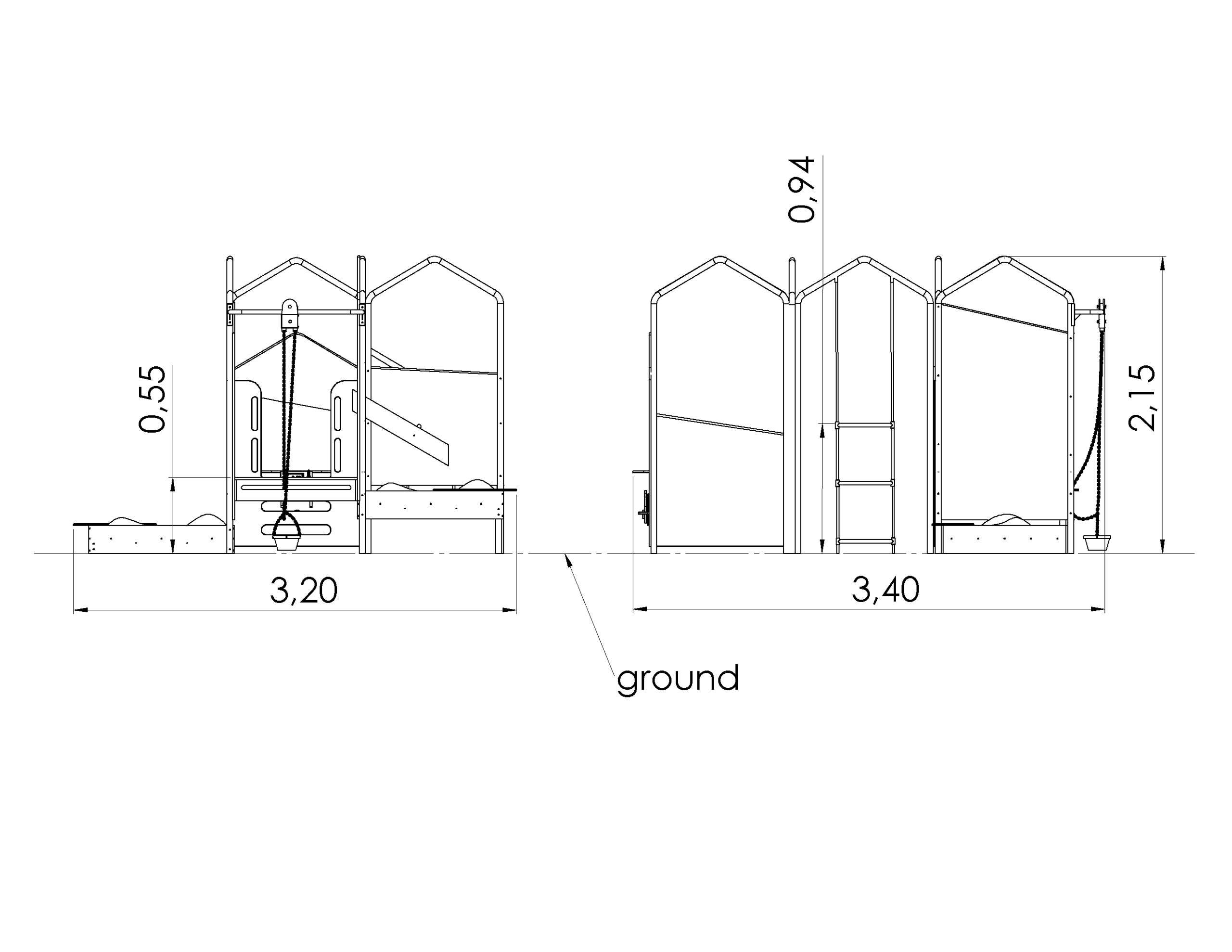 Lekställningar Bodmar är en medelstor FARMLIFE-enhet som kombinerar temalek med fysisk aktivitet. Produkten innehåller flera lekfunktioner, bland annat klätternät, repstege och sandlekelement som skapar variation i barns lekmönster. Helheten uppmuntrar samarbete, fantasi och motorisk utveckling i samma struktur. Bodmar passar lekplatser, förskolegårdar och bostadsnära utemiljöer där man vill erbjuda en tydlig och engagerande gårdstematik. Konstruktionen är avsedd för återkommande användning i offentlig drift. Mått enligt specifikation: cirka 3,4 x 3,2 x 2,15 m. Rekommenderad ålder: 2+. En robust lösning för långsiktig lek och lärande.