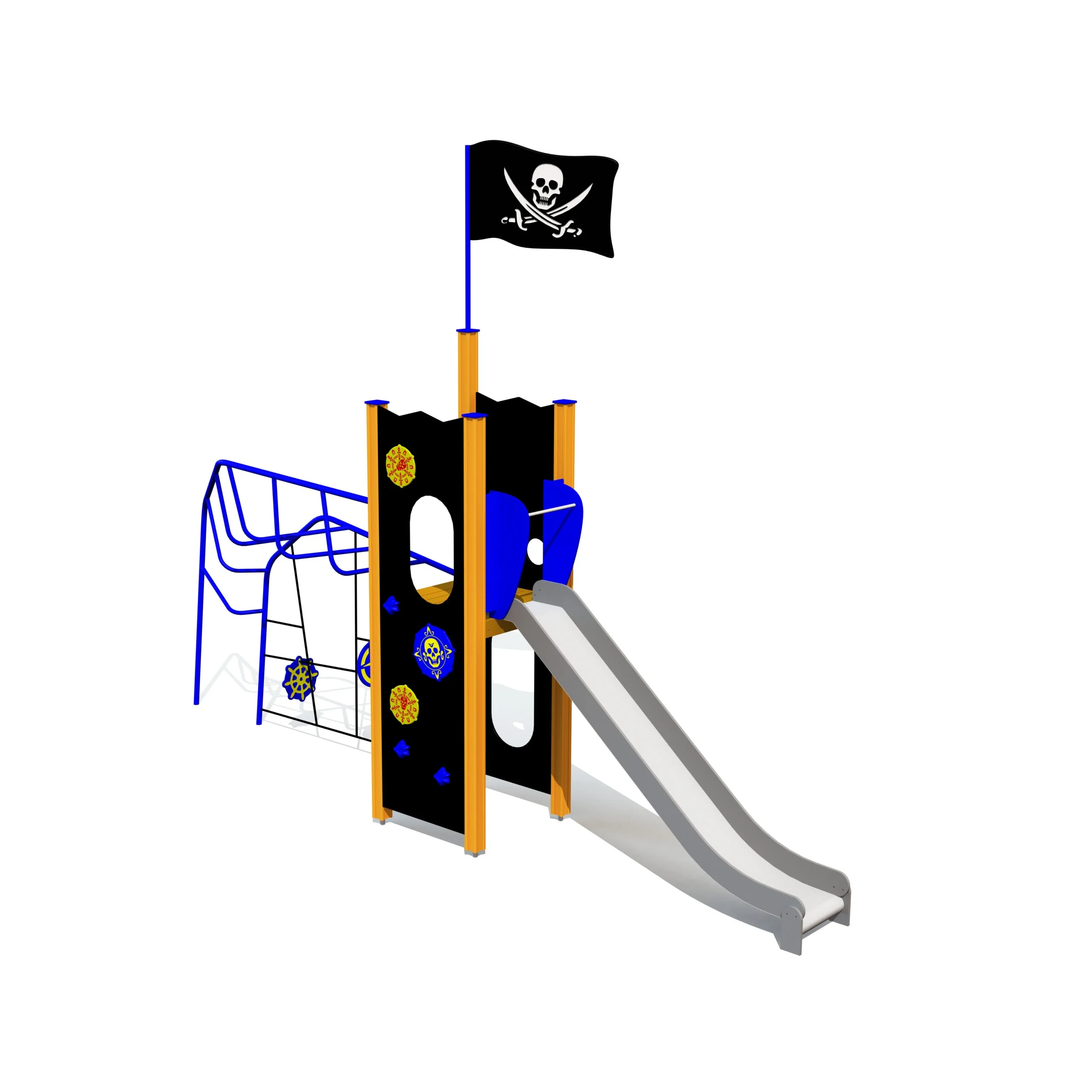 Pirattematiserad lekställning för aktiv lek, samarbete och fantasifulla äventyr på lekplatsen.