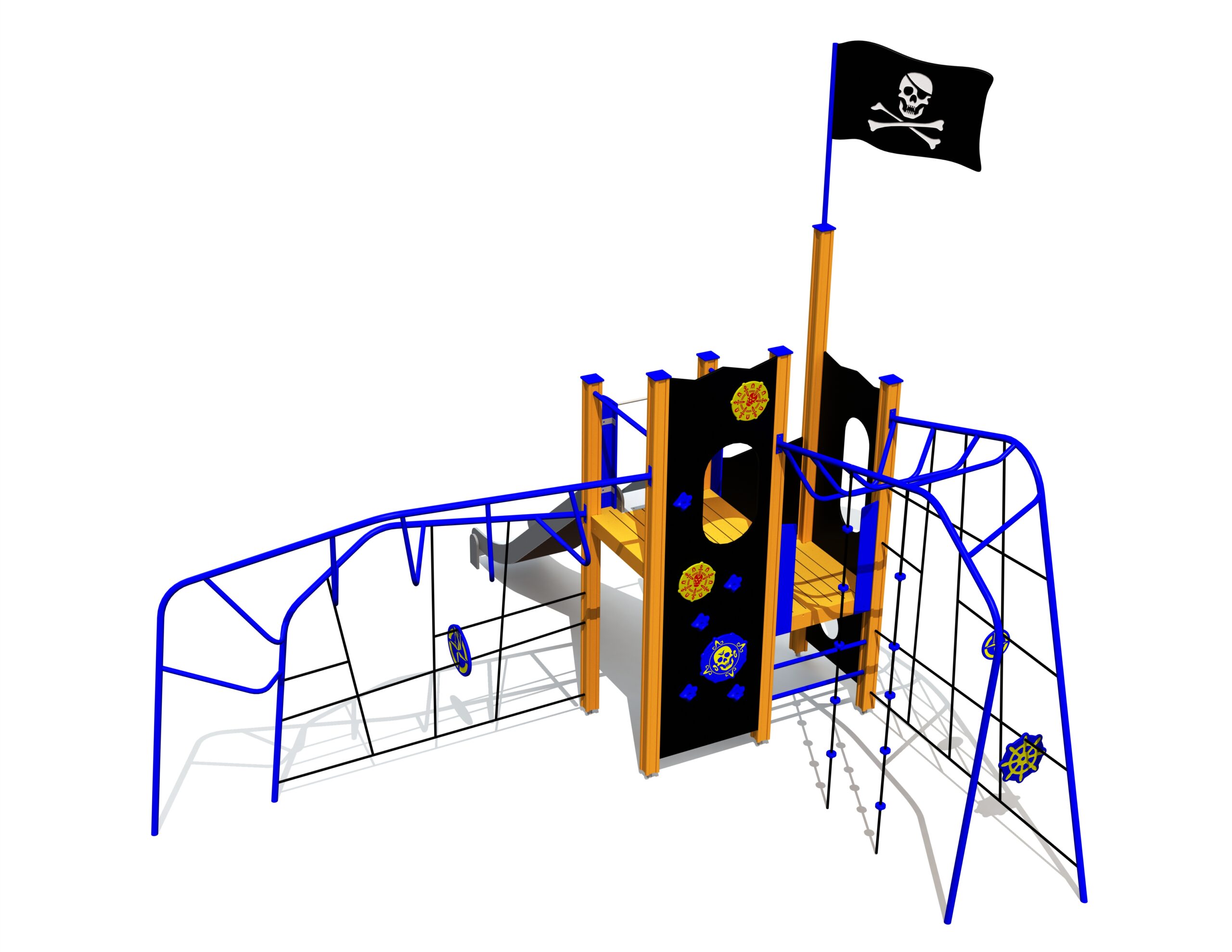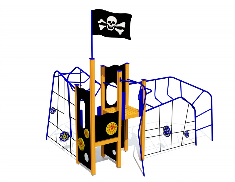 Pirattematiserad lekställning för aktiv lek, samarbete och fantasifulla äventyr på lekplatsen.