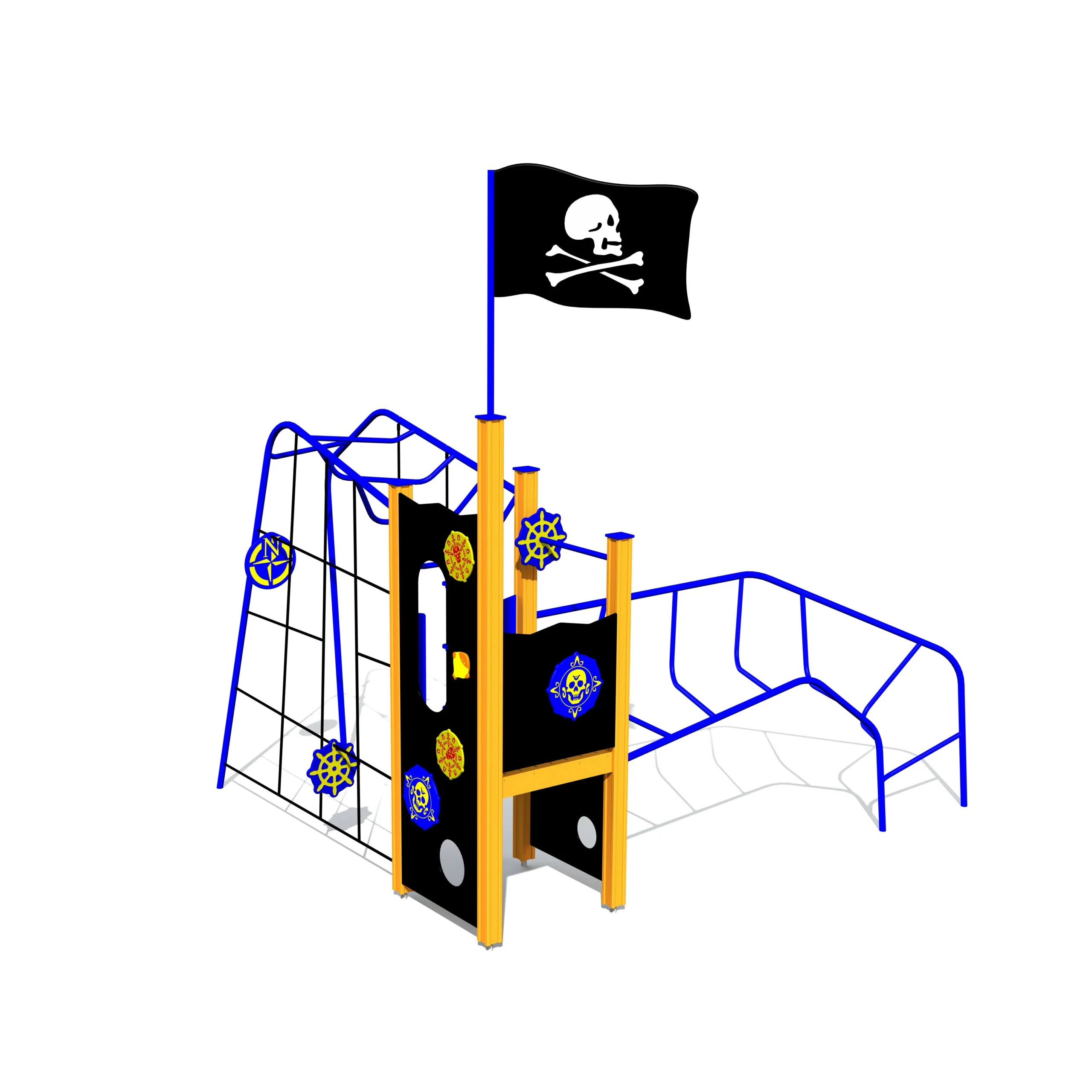 Pirattematiserad lekställning för aktiv lek, samarbete och fantasifulla äventyr på lekplatsen.