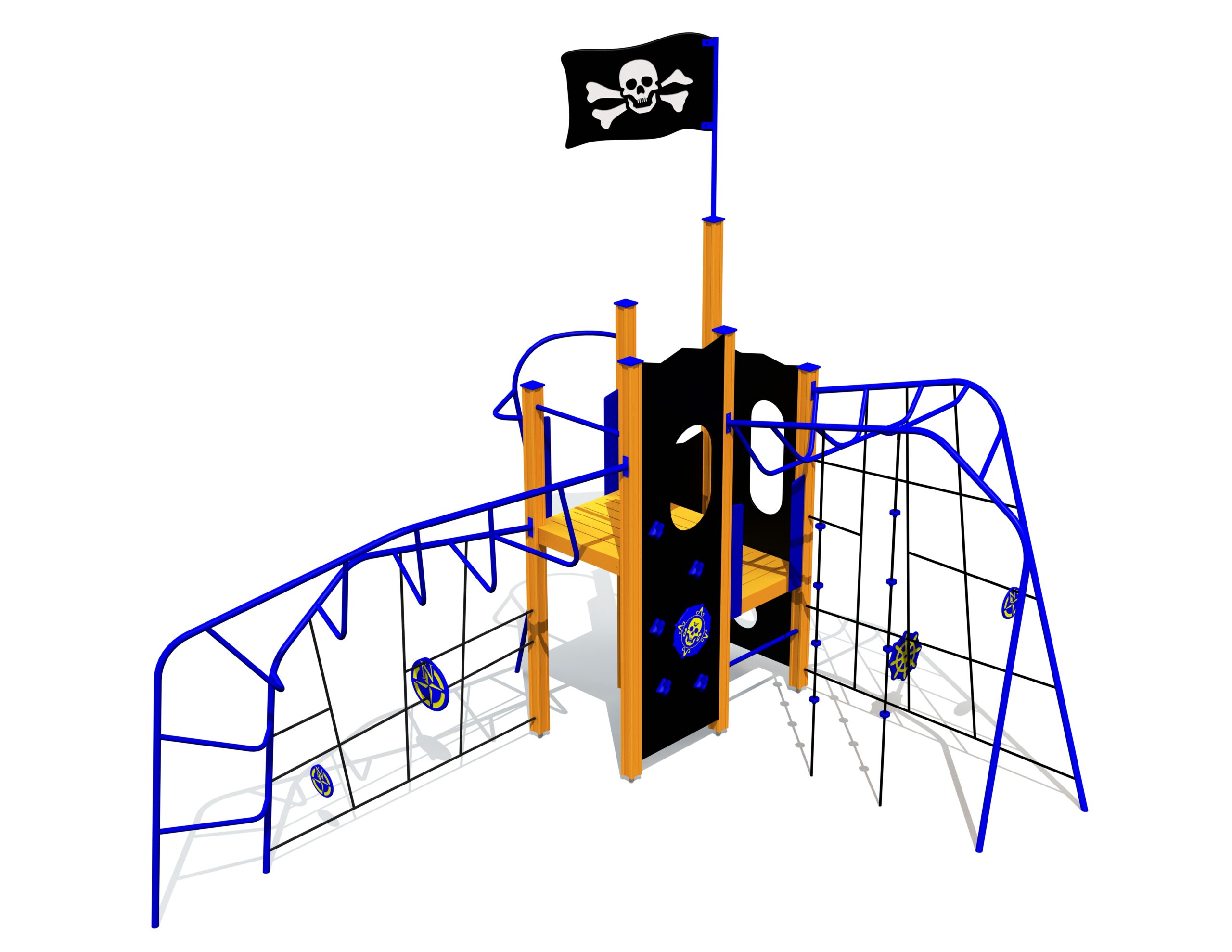 Lekställningar Nordal ingår i serien PIRATE WORLD och är en lekställning som kombinerar rörelselek, rollspel och social interaktion. Den tydliga piratmiljön uppmuntrar barn att utforska, samarbeta och skapa egna berättelser genom klättring, balans och lek i grupp. Specifikationer: Rekommenderad ålder: 4+; max fallhöjd: 2,64 m; mått ca 3,98 x 6,06 x 4,43 m (L x B x H).