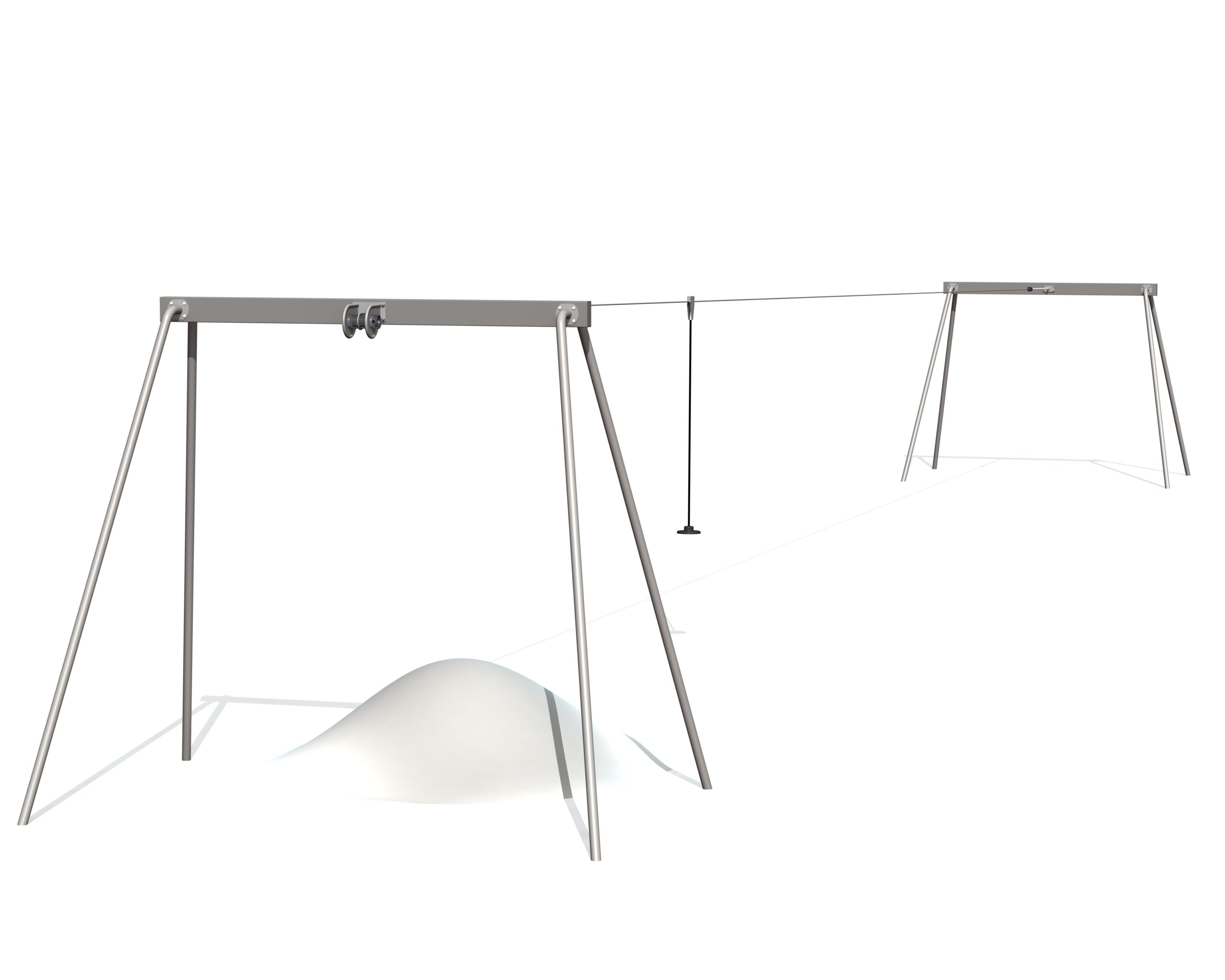 Tarzans spår består av en 25 meter lång vajer uppspänd mellan två kraftiga konstruktioner i varmförzinkat stål. Attraktionen är utrustad med linbanevagn, aluminiumförstärkt gummisäte samt stoppanordning. Tarzans spår erbjuder barn en spännande och fartfylld lekupplevelse som stimulerar mod, balans och rörelseglädje.