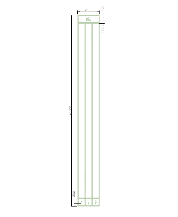 Löparbana i thermoplast för skolgårdar och lekytor, anpassad för träning, lek och tävling. Kan beställas i olika storlekar och i upp till 26 olika kulörer för att passa platsens utformning. Standardmått är cirka 20 x 2,3 meter. Kontakta oss för mer information om anpassningar.