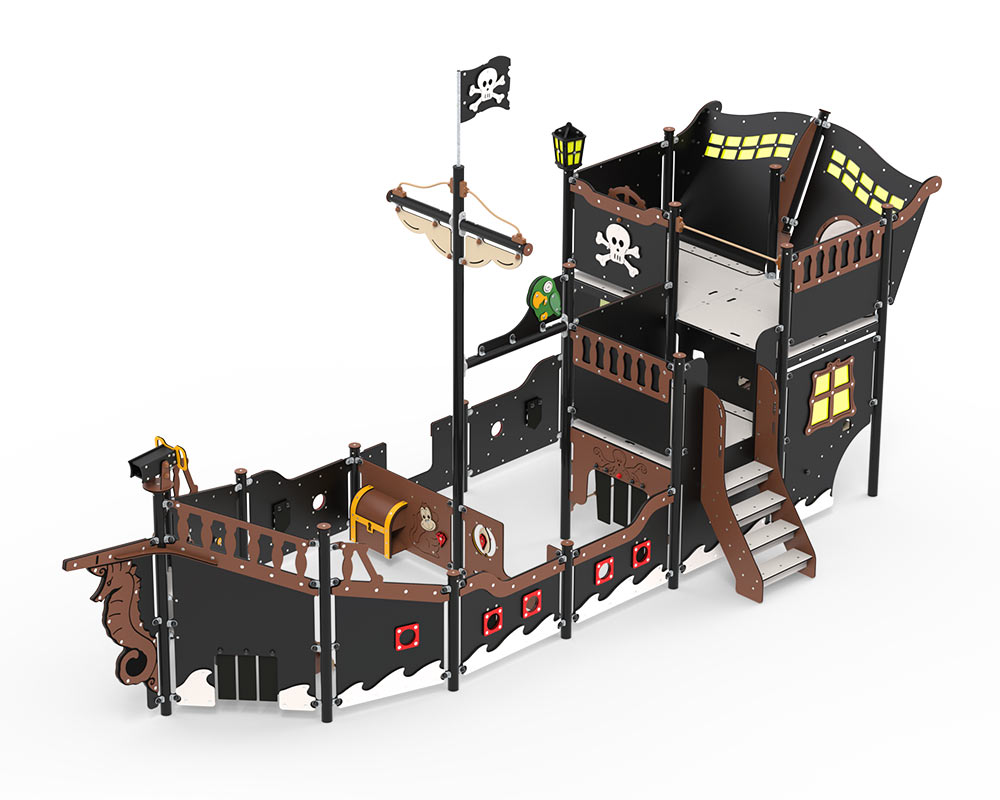 Stort piratskepp för ytmontering som gör det möjligt att skapa ett komplett piratuniversum även på hårda underlag som asfalt, torg eller takterrasser.