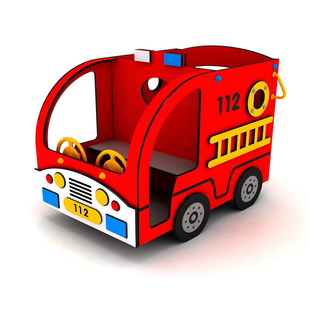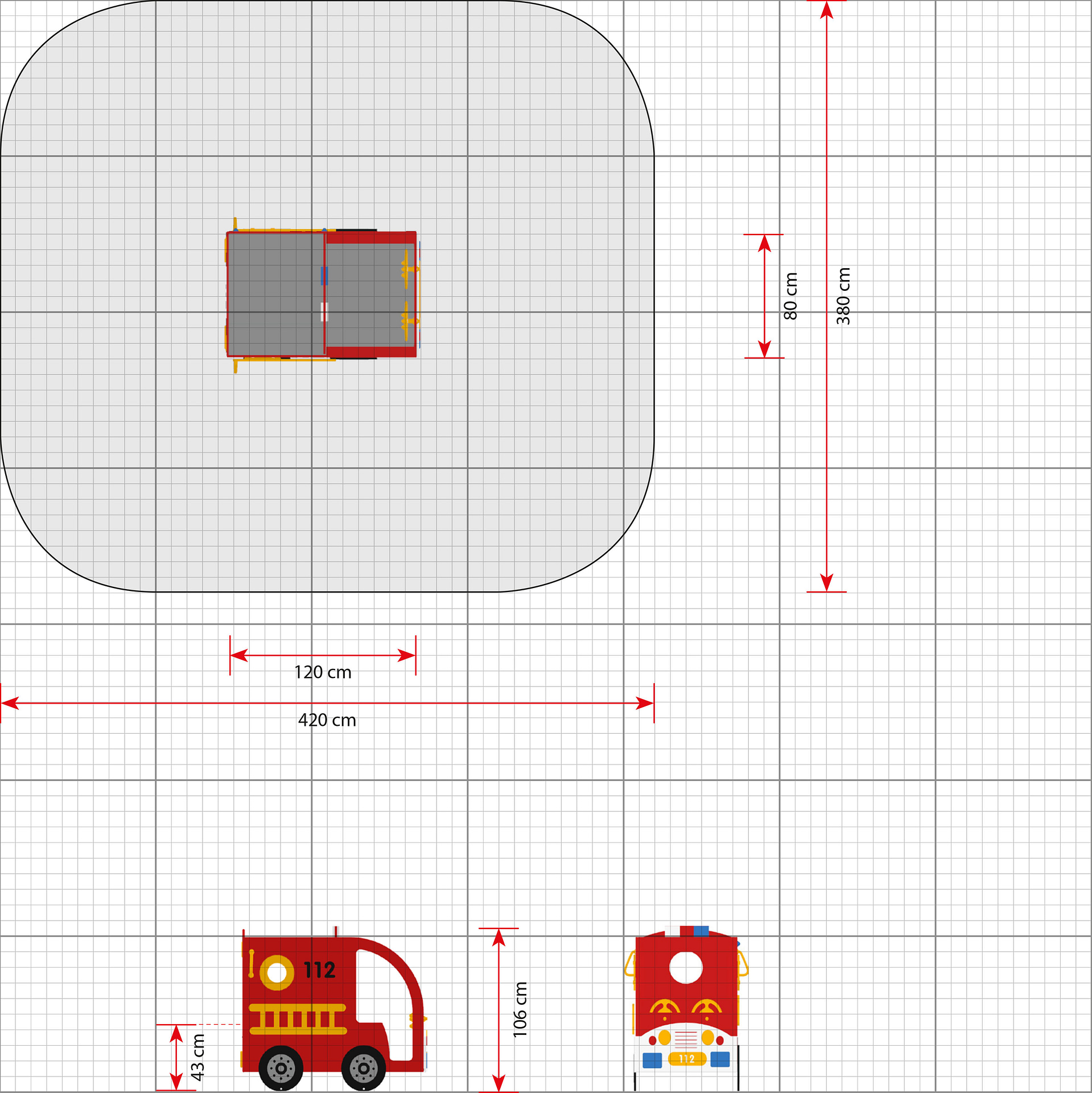 Minibrandbilen är en utrymmeseffektiv lekstuga med rörliga detaljer, sittplatser och tydligt brandtema. Den stimulerar fantasi, rollspel och samarbete trots sin mindre storlek. Produkten är tillverkad i slitstarka material och kan installeras direkt på gräs.