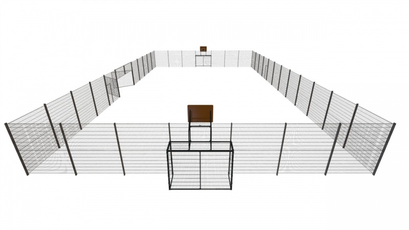 Stor multiarena i metall för basket, fotboll och andra bollspel i offentliga miljöer.
