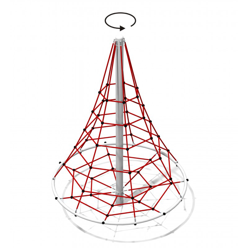 Nätstruktur med rotationsfunktion avsedd för barn i åldern 3–15 år och utformad för aktiv klätterlek och balansövningar.