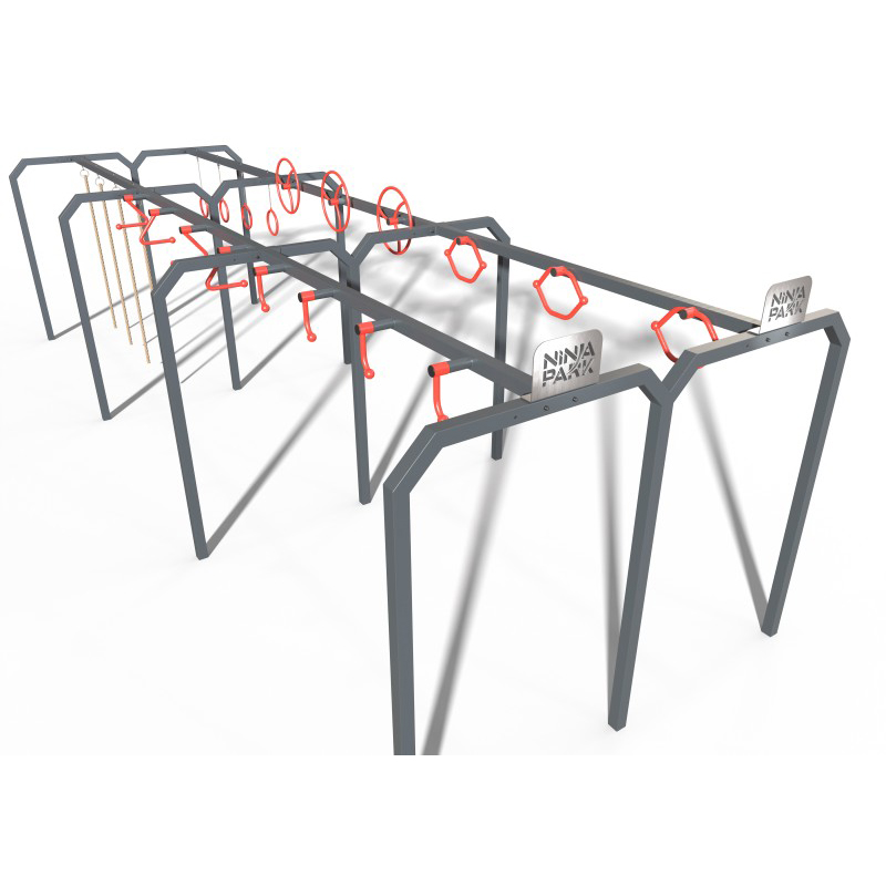 Ninja Park gymnastikset för ungdomar och vuxna baserat på kroppsviktsträning. Setet utvecklar överkropp, bål och balans och kan konfigureras individuellt. Innehåller rörliga handtag, spakar, svängbara hjul, rep, gymnastikhjul på kedjor och handtag. Konstruktionen är tillverkad av korrosionsskyddat och pulverlackerat stål.