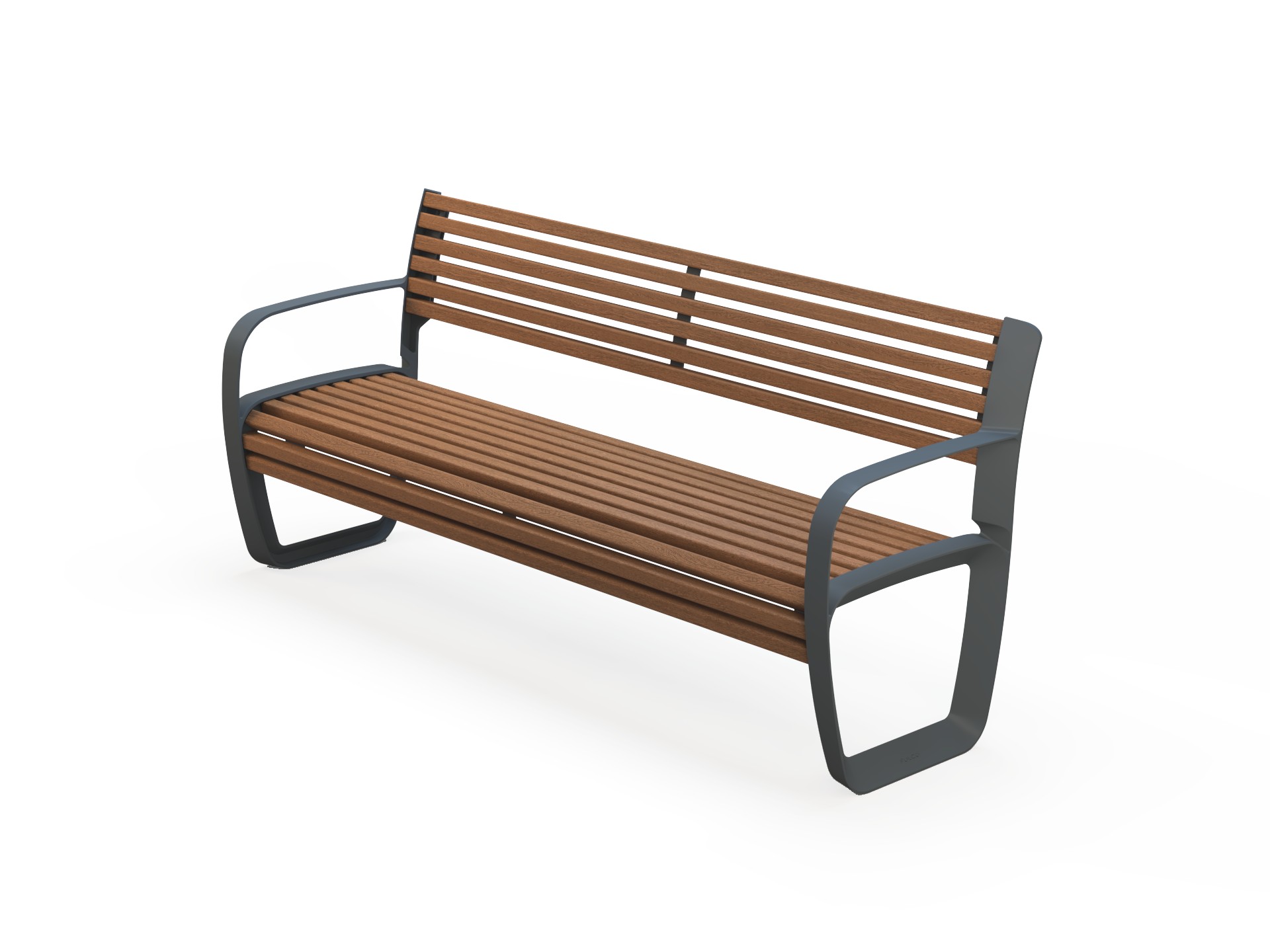 Parkbänk Alu är en parkbänk i längden 180 cm, med metalldelar gjutna i aluminium och sittytor i askträ. Modellen finns även i 60, 150 och 180 cm, vilket gör det möjligt att anpassa bänkraden efter platsens förutsättningar. Trätoner kan väljas i ljus eller mörkt tropiskt trä, alternativt ask. Materialangivelsen omfattar stål, trä och aluminium. Parkbänk Alu lämpar sig för offentliga miljöer där man vill kombinera träkänsla med aluminiumgjutna detaljer. Information om montering och färgsättning anges inte här. Den tydliga konstruktionen gör produkten enkel att använda i vardagen och ger en lösning som fungerar i både mindre och större projekt. Sammantaget är det ett hållbart val för långsiktig användning i offentlig utemiljö.