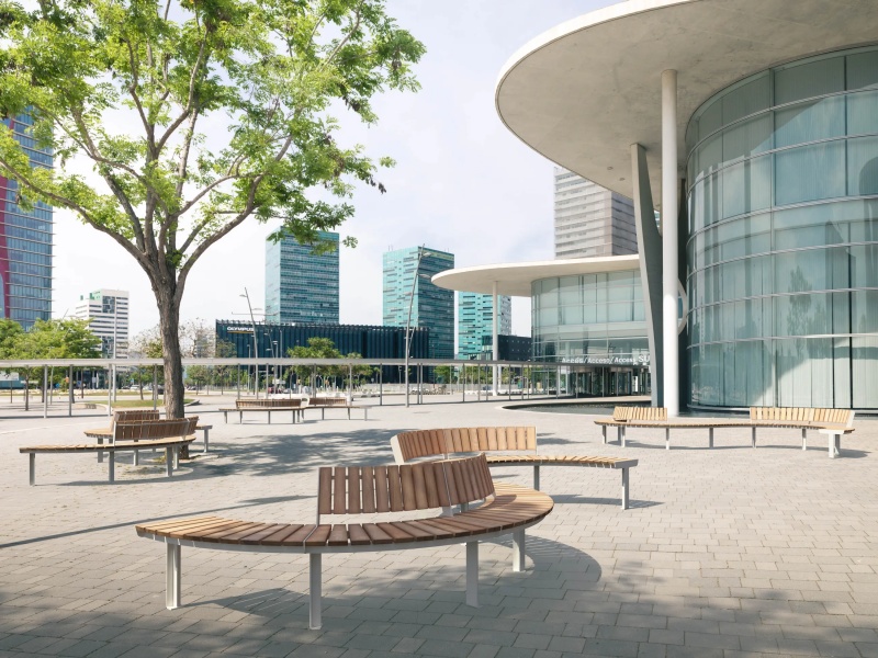 Parkbänk KADRIORG är en böjd sittlösning med ryggstöd, framtagen för att skapa en inbjudande plats att sitta på i utomhusmiljöer. Designen med stödstolpar i en enkel rad ger en visuellt lätt silhuett och kan kombineras i modulära arrangemang för större sittgrupper eller placeras som en enskild möbel. Stålstrukturen är försedd med zinkbeläggning och pulverlackering för korrosionsskydd. Ytbehandlingen är vald för att bänken ska tåla väder och vind över tid. Sits och ryggstöd består av massiva träribbor i termoask. Träribborna ger ett naturligt uttryck i kombination med stål. För extra stabilitet finns förankringsmöjlighet.
