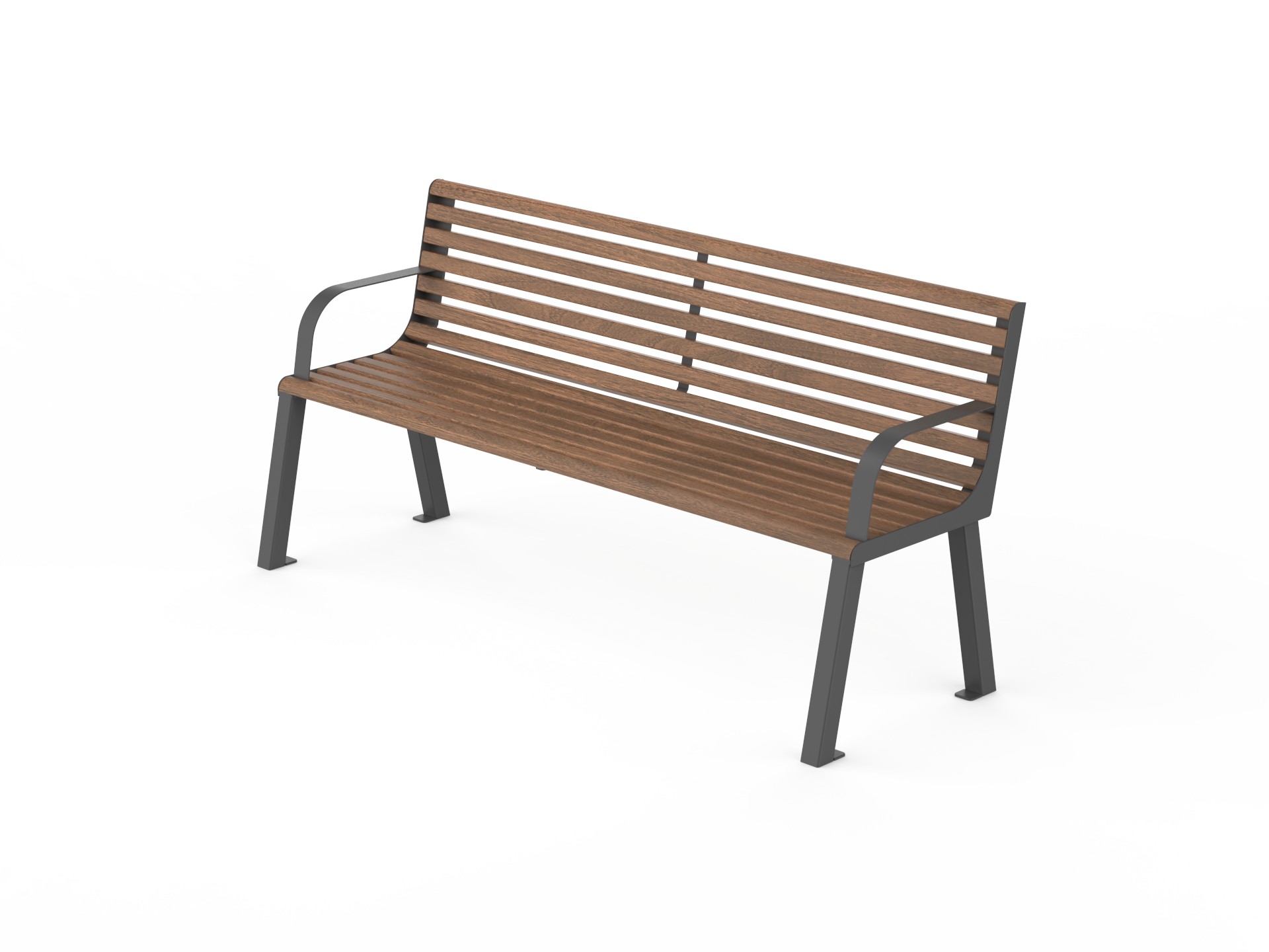 Park bench 180 cm galvanized and painted steel, ash wood. Available in lengths of 60, 150 and 180 cm. Options galvanized and powder-coated as well as stainless steel. Color choices according to RAL code. Wood tones include light and dark tropical wood or ash.