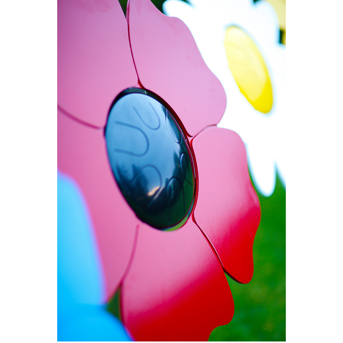 Poppy Petal Drum är ett visuellt slående utomhusinstrument som kombinerar stark färgsättning med fylligt trumljud.
