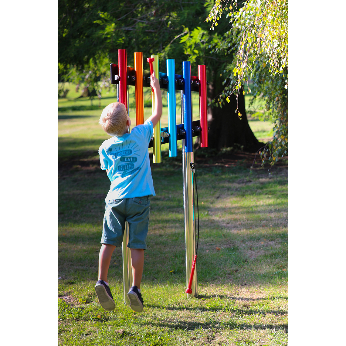Instrumentet passar alla åldrar och gör det enkelt att utforska melodier och klang. Ett uppskattat inslag i parker, skolor och offentliga utomhusmiljöer.