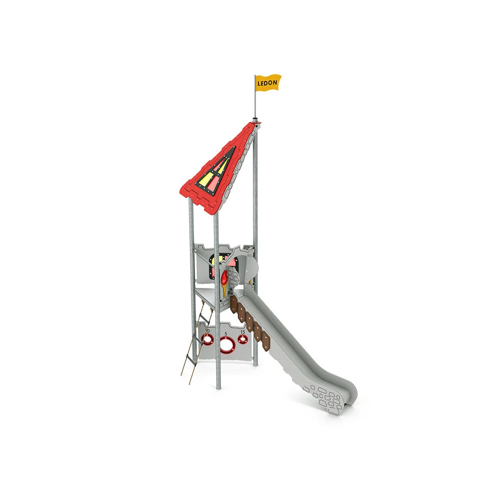 Robin är ett lekställning med ett triangulärt torn som nås via repstege. Plattformen har en golvhöjd på 140 cm och leder till en rutschkana som ger fartfylld lek. Under tornet finns en lekpanel med mål och poäng som uppmuntrar till spel, språkträning och enkel matematik. Lekställningen utvecklar motorik, koordination och tävlingslek.
