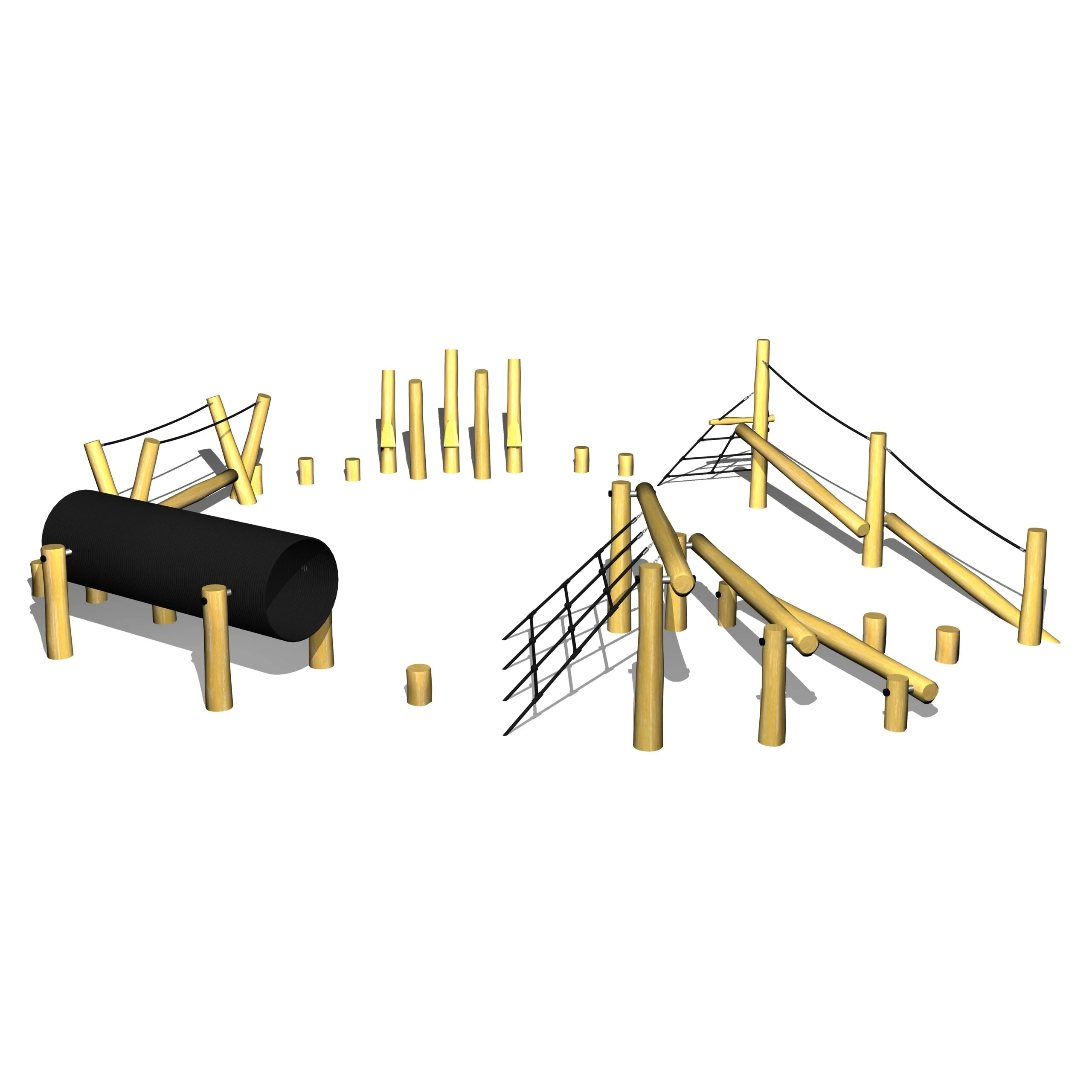 Förkonfigurerad agilitybana i robinia för motorisk träning.