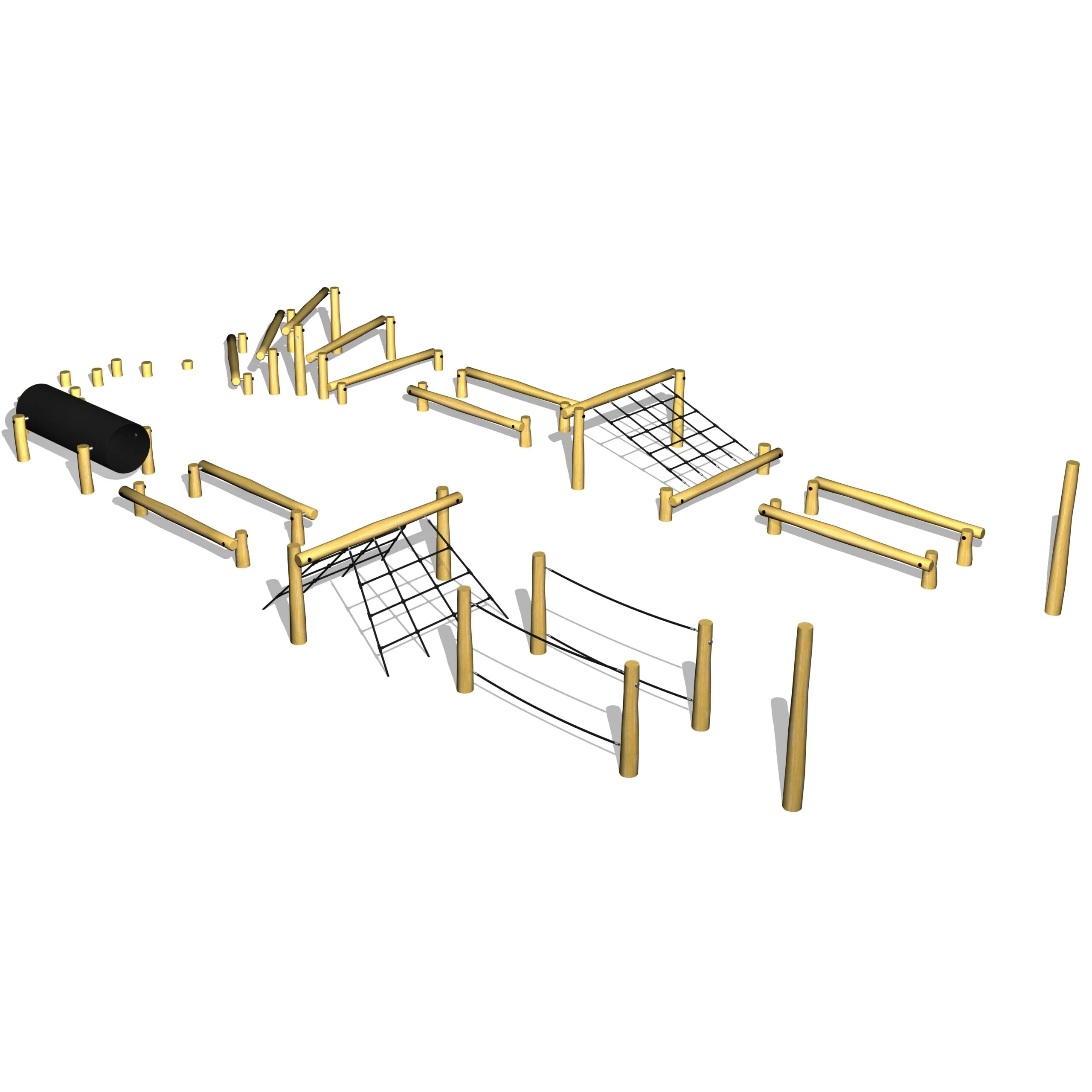 Robinia Agil 12 är sammansatt av flera element från balansbana 29-serien och erbjuder en kompakt men varierad balansträning.