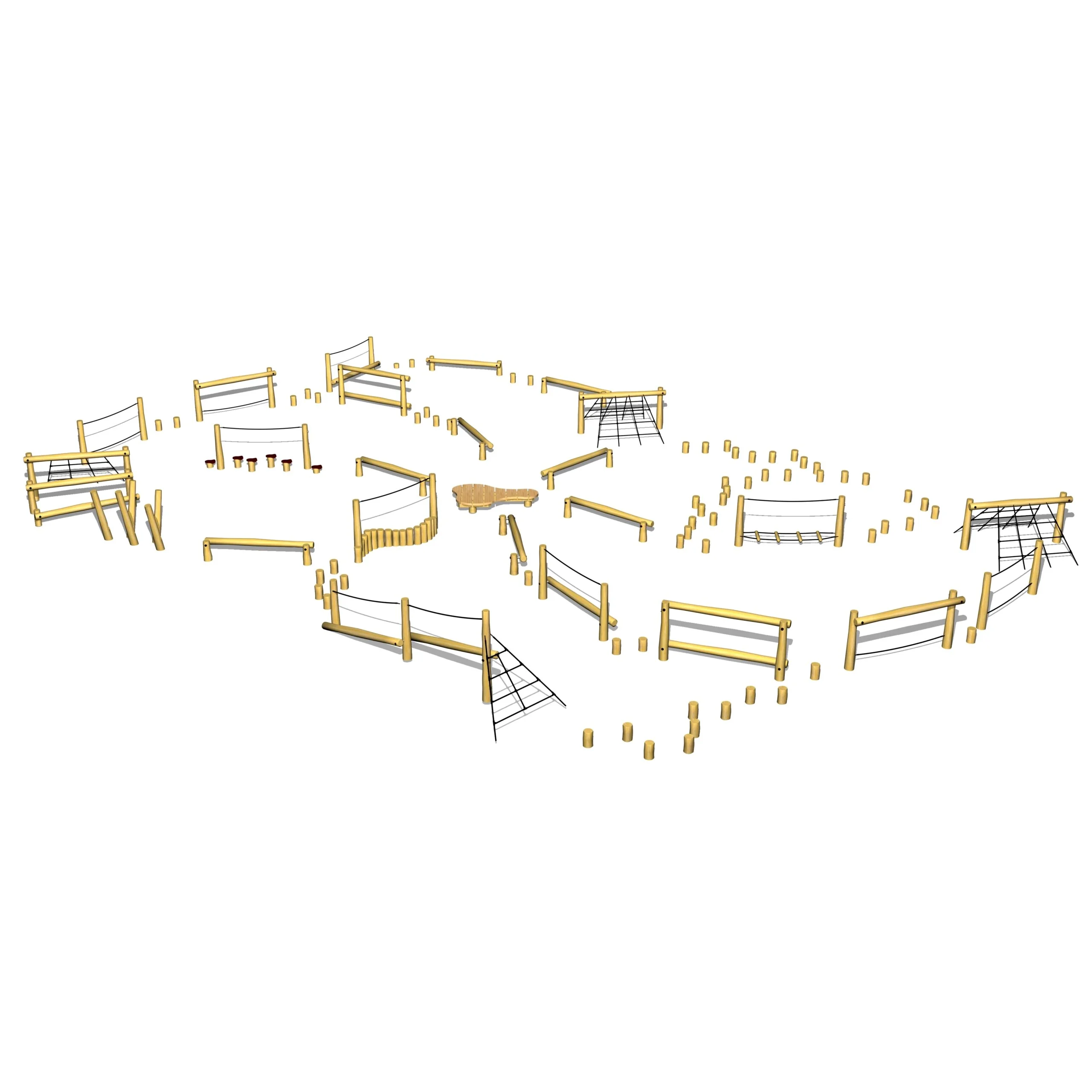 Robinia Agil 8 är sammansatt av element från balansbana 29-serien och ger barn möjlighet att träna balans och koordination genom varierad rörelselek.