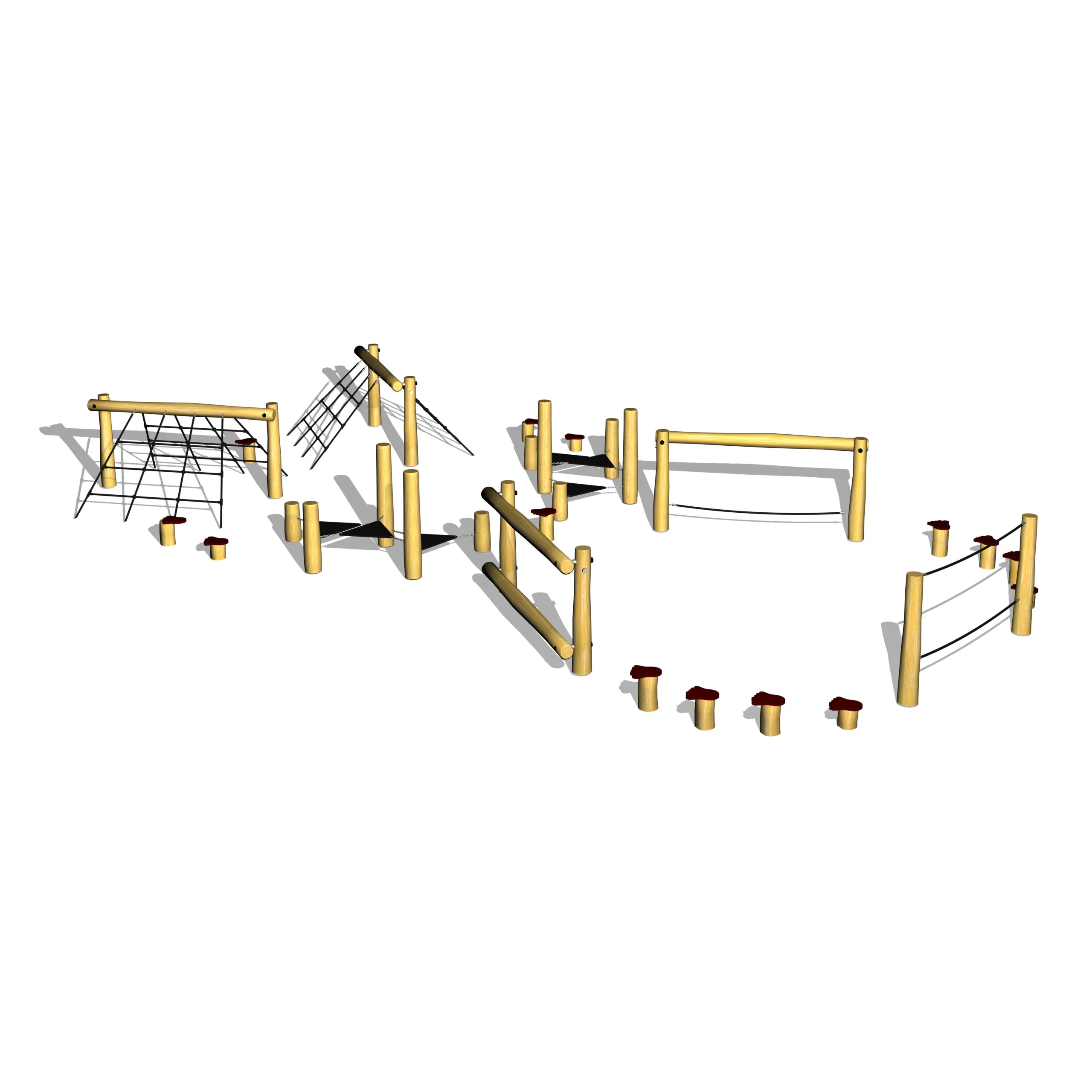 Robinia Agil är en agilitybana sammansatt av element från balansbana 29-serien och kan användas som inspiration eller färdig lösning.