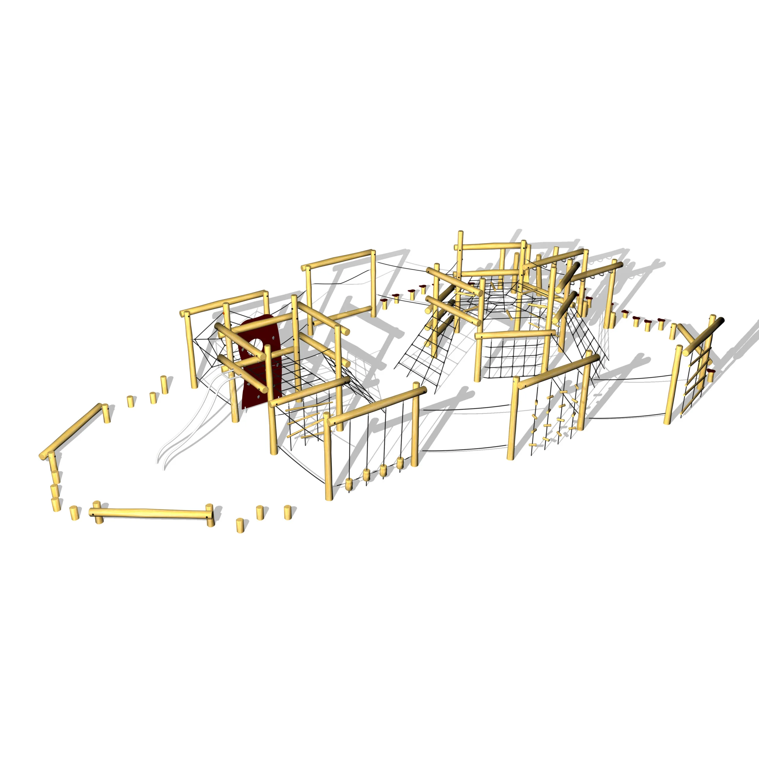 Stort klättersystem i robiniaträ med kombinerade klätter- och balansmoment.