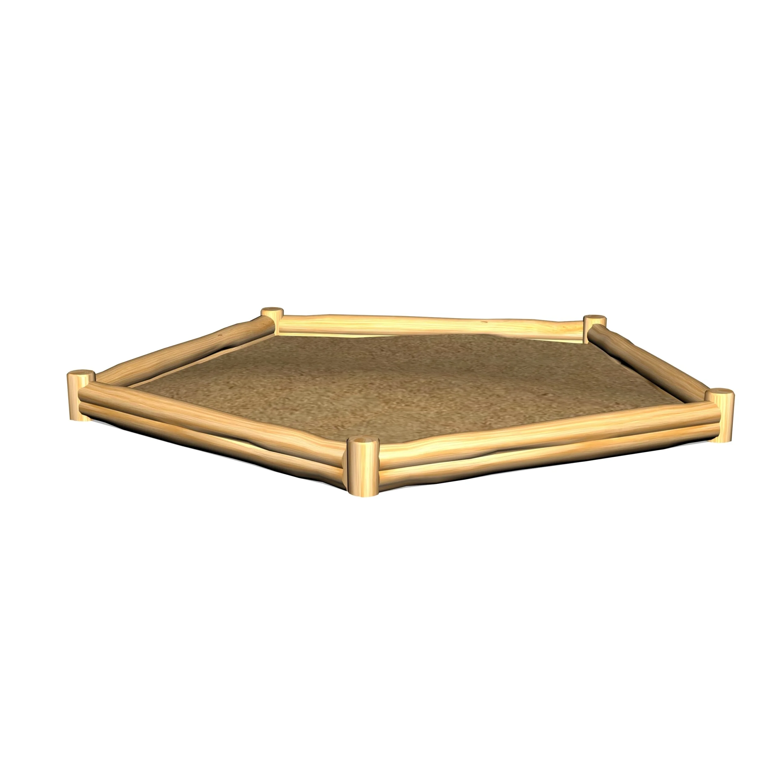 5-sidig sandlåda i robinia som ger en tydlig och naturlig lekyta för sandlek.