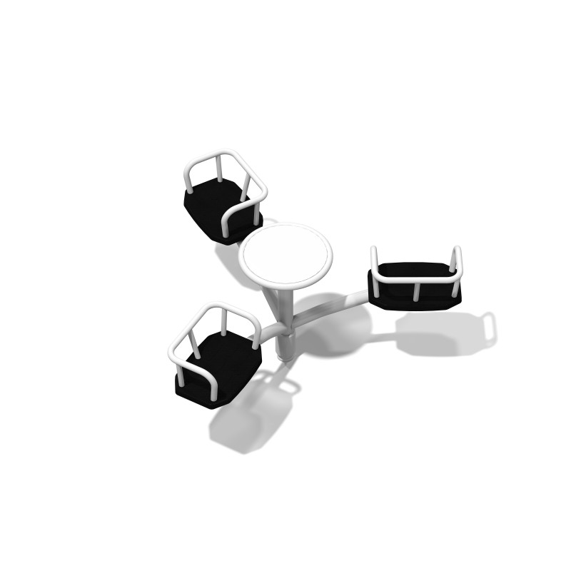 Trearmad rondell med tre sätena halkskydd med ryggstöd. En enhet avsedd för barn i åldern 3-16 år.