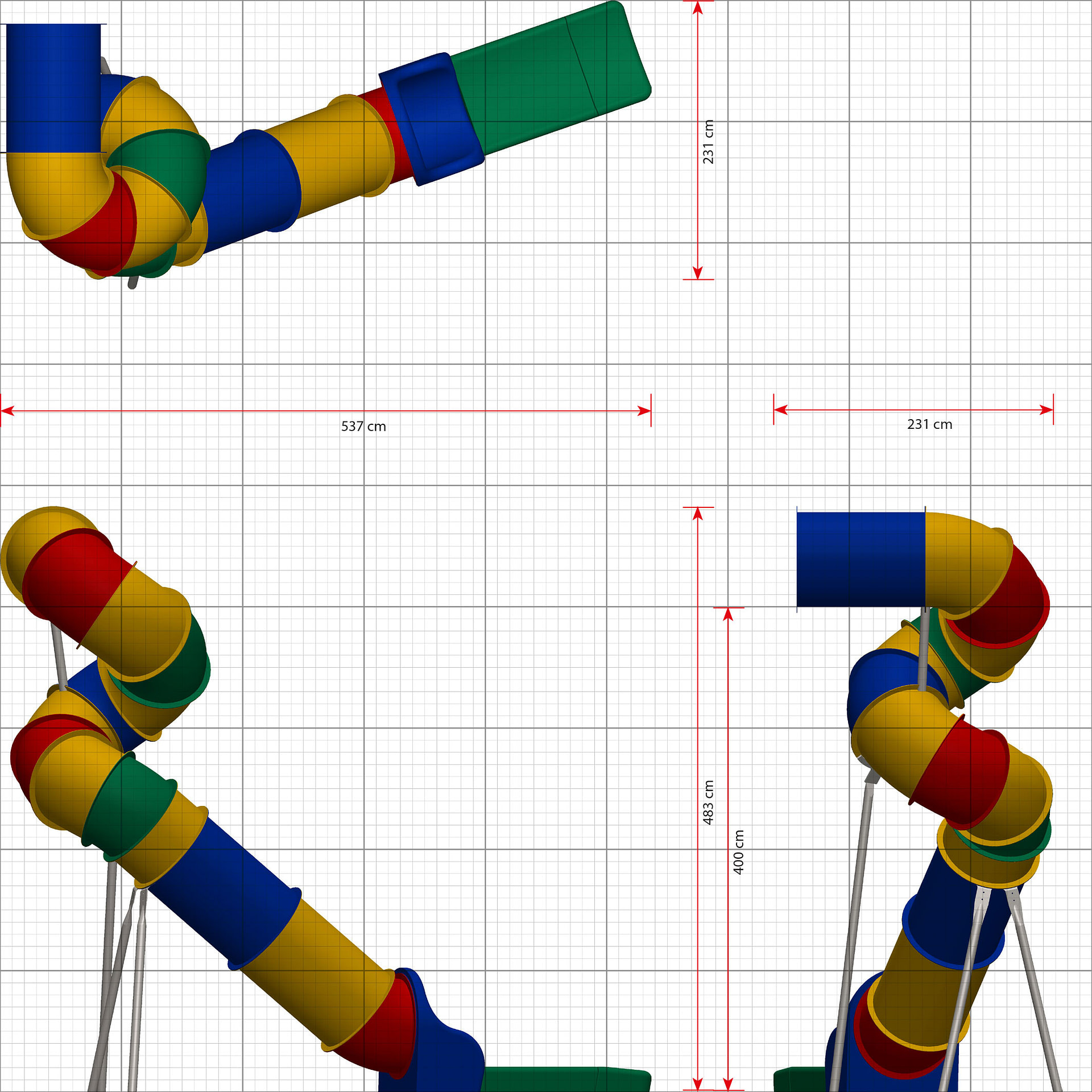 Tunnelrutschkana med starthöjd 400 cm i färgglada kombinationer. Alla rörkomponenter är laserskurna för exakt passform oavsett färgval. Modellen är utrustad med tubslideutgång som säkerställer en bekväm avslutning vid höga hastigheter. Åk tränar balans, motorik och förståelse för orsak och verkan. Kan specialanpassas.