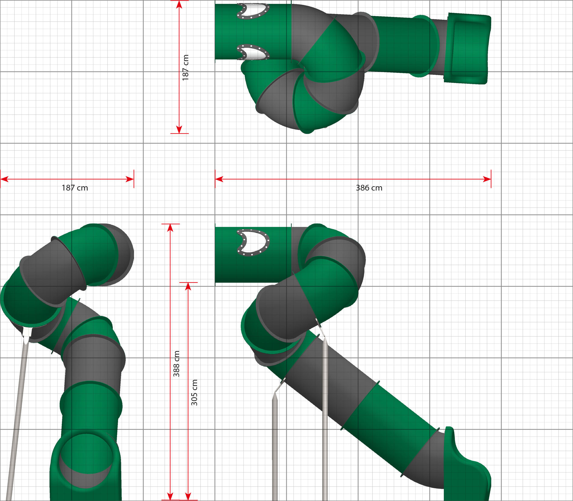 Tunnelrutschkana för högspelssystem med starthöjd 305 cm. Fönster i toppen kan adderas för extra ljusinsläpp, särskilt i spiralformade rör. Lek med tunnelrutschkana stärker barns balans, motorik och rumsliga intelligens samt bidrar till ökat självförtroende genom att barn vågar klättra högt och åka ner. Kan kundanpassas.