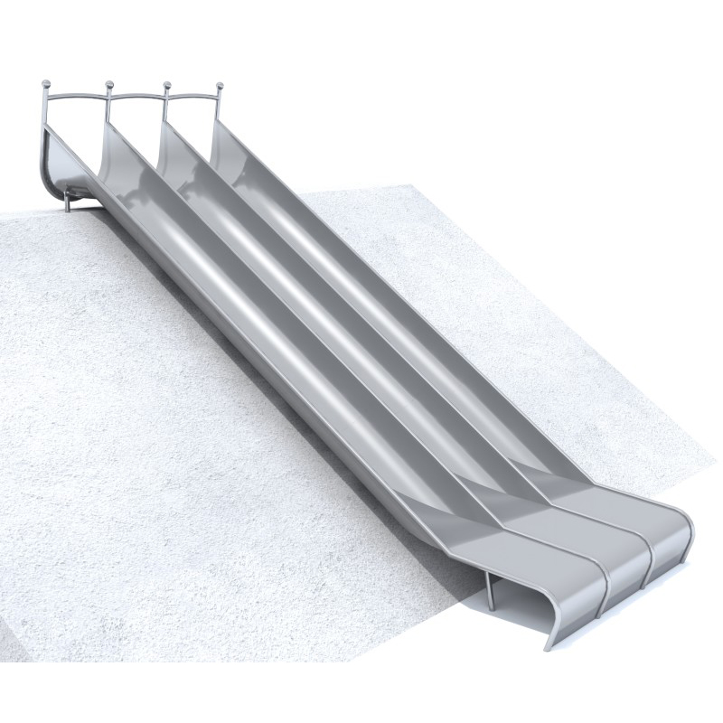 Släntrutschkana med tre parallella banor för effektiv och social lek. Anpassad för större lekytor.