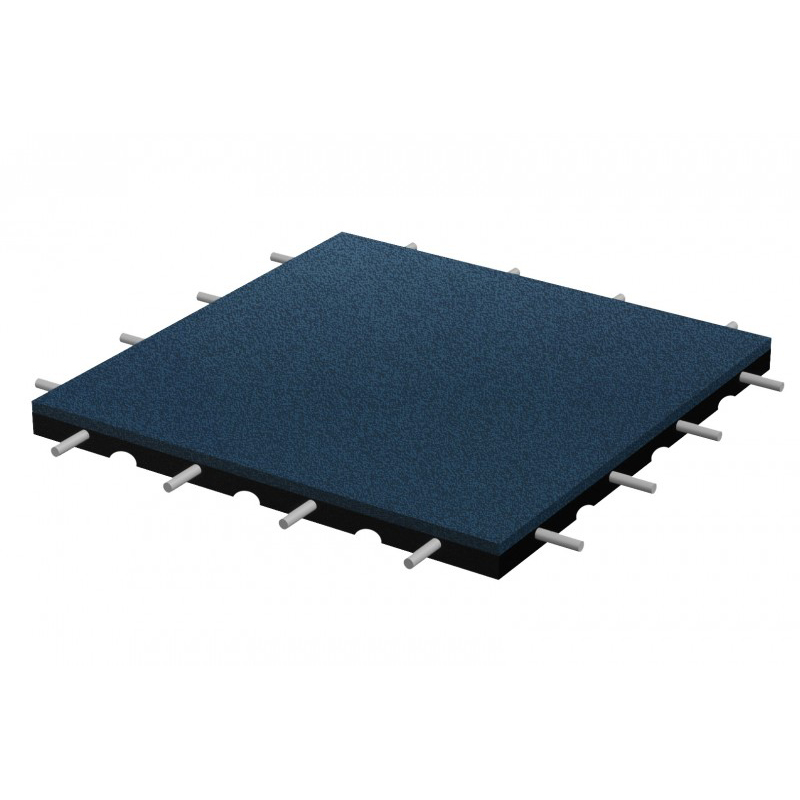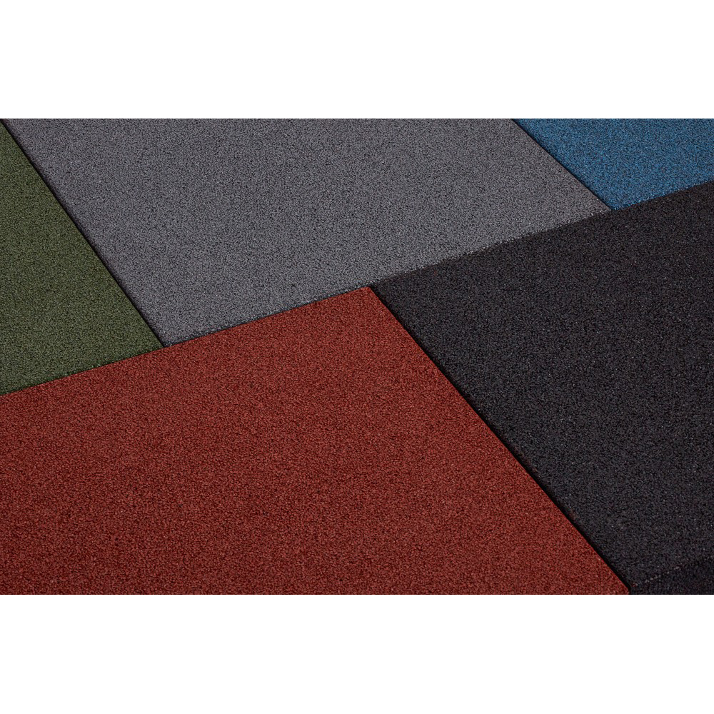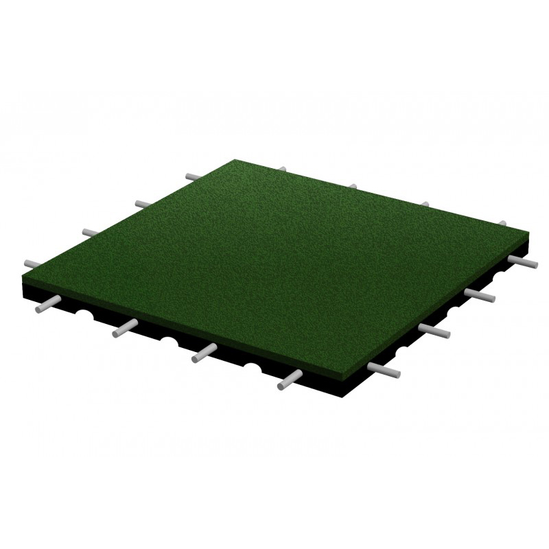 SBR-säkerhetsplatta i 500×500 mm-format med 40 mm tjocklek och fallhöjd upp till 1,3 m. Monteras på stabil grund utan lim och kopplas ihop med installationsstift.
