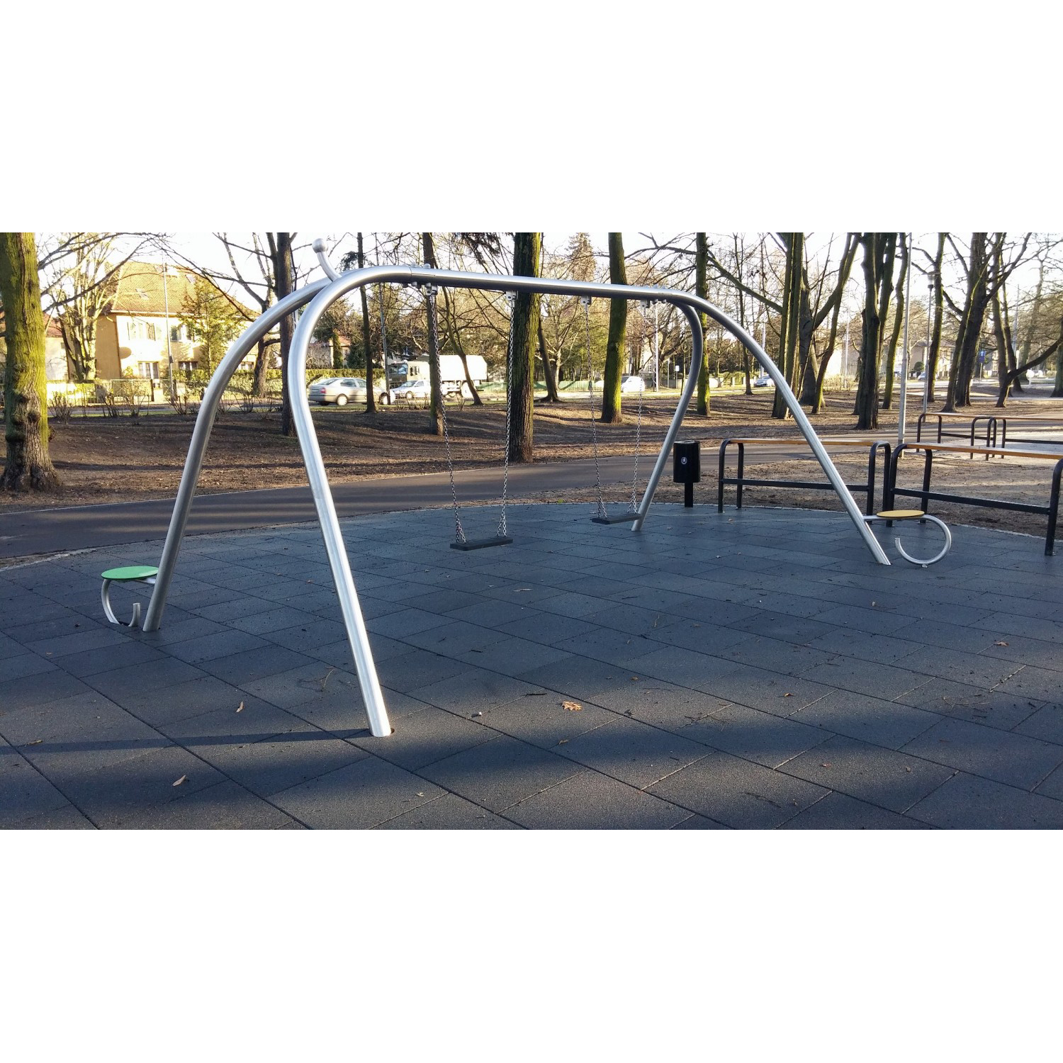 Stötdämpande fallskyddsplatta för lekplatser och aktivitetsytor.