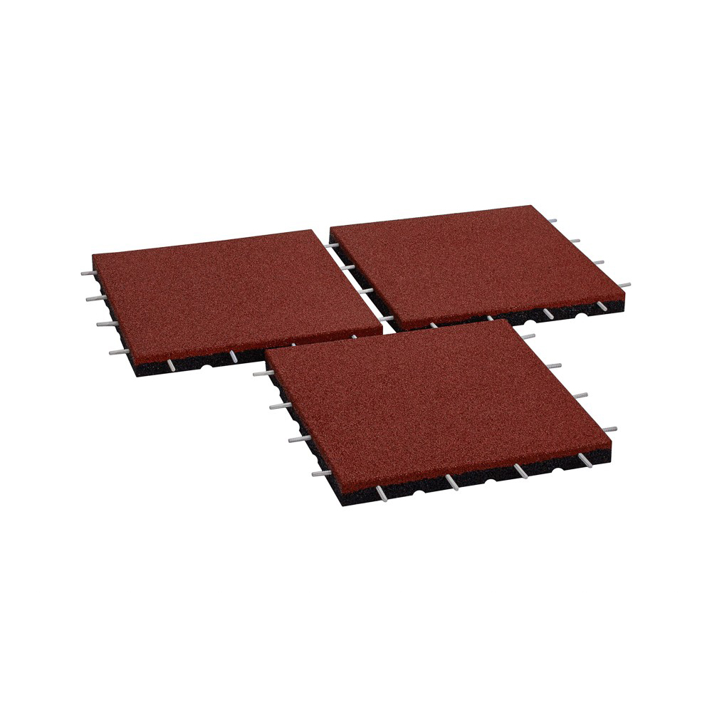 SBR-säkerhetsplatta i 75 mm tjocklek som klarar fallhöjder upp till 2,4 m. Monteras utan lim och låses samman med stift för stabil och långvarig installation.